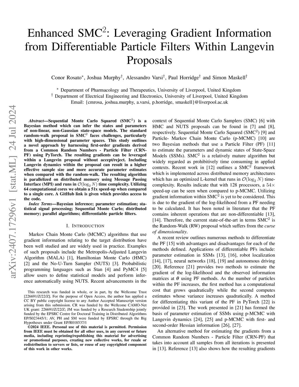 Sequential Monte Carlo Squared (SMC) is a Bayesian method which can infer the states and parameters of non-linear, non-Gaussian state-space models. The standard random-walk proposal in SMC faces challenges, particularly with high-dimensional parameter spaces. This study outlines a novel approach by harnessing first-order gradients derived from a Common Random Numbers - Particle Filter (CRN-PF) using PyTorch. The resulting gradients can be leveraged within a Langevin proposal without accept/reject. Including Langevin dynamics within the proposal can result in a higher effective sample size and more accurate parameter estimates when compared with the random-walk. The resulting algorithm is parallelized on distributed memory using Message Passing Interface (MPI) and runs in time complexity. Utilizing 64 computational cores we obtain a 51x speed-up when compared to a single core. A GitHub link is given which provides access to the code.