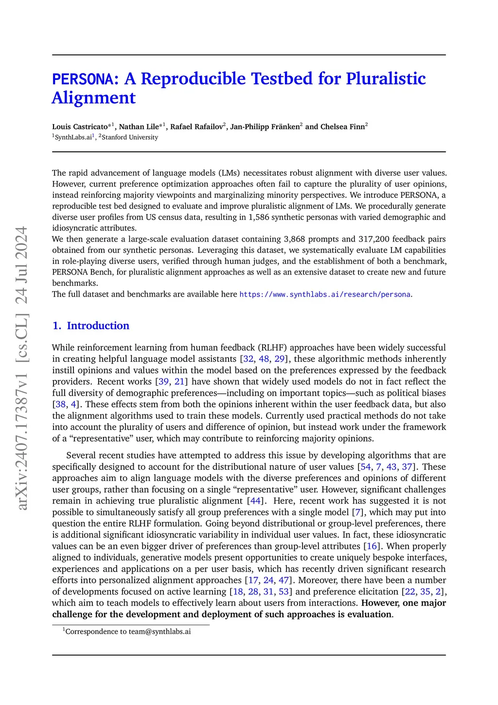 PERSONA: A Reproducible Testbed for Pluralistic Alignment