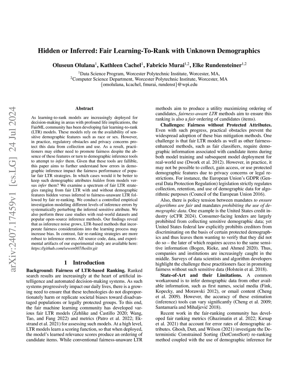 Hidden or Inferred: Fair Learning-To-Rank with Unknown Demographics
