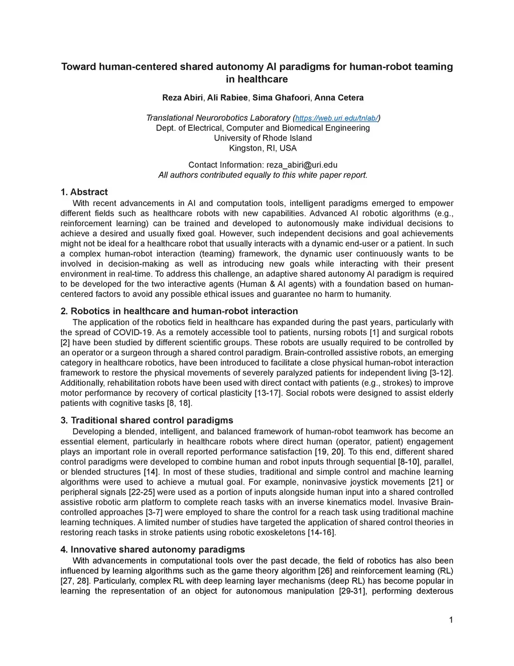Toward human-centered shared autonomy AI paradigms for human-robot