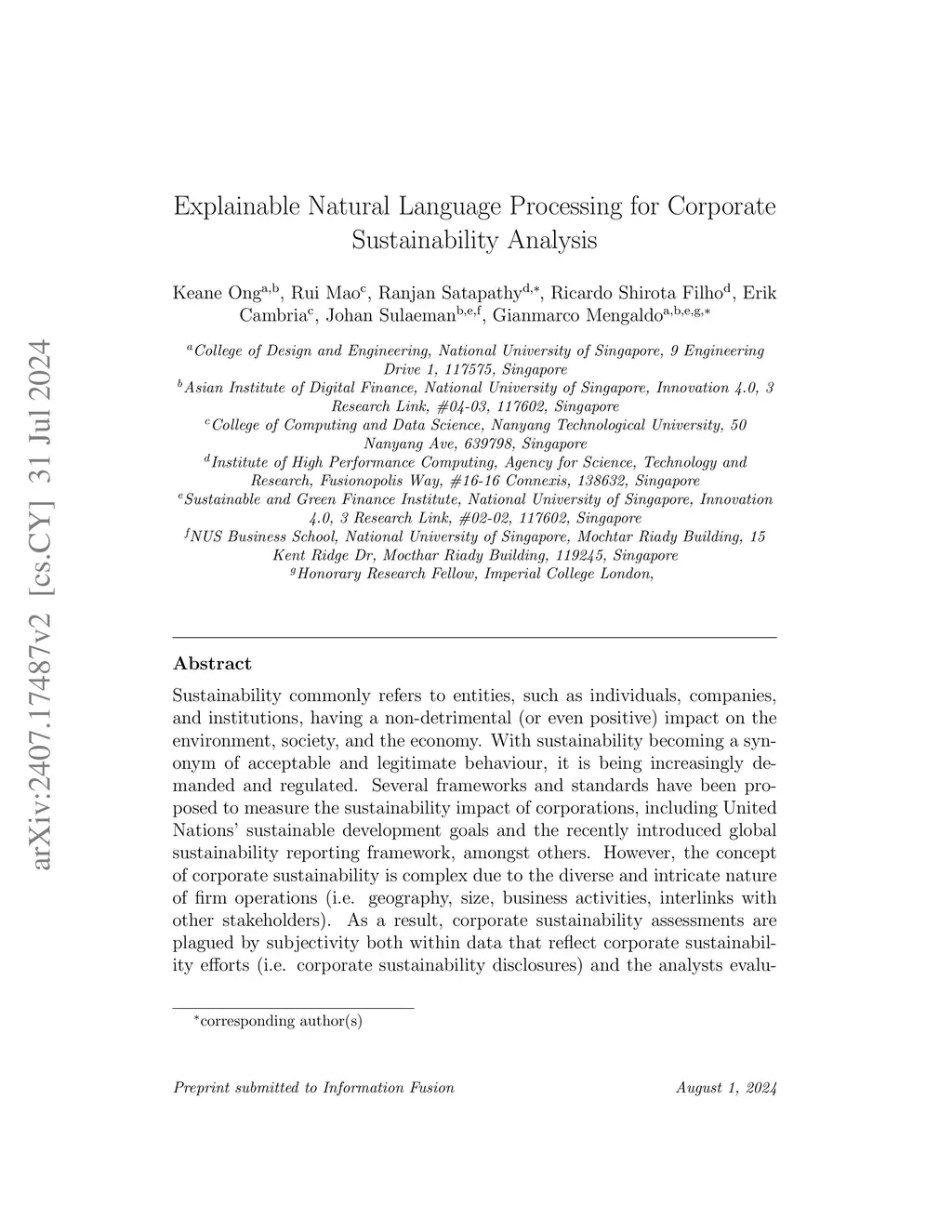 Explainable Natural Language Processing for Corporate Sustainability