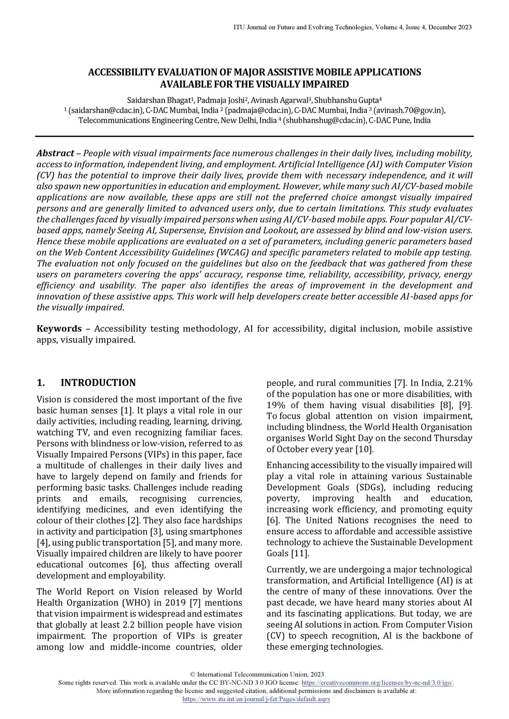 People with visual impairments face numerous challenges in their daily lives, including mobility, access to information, independent living, and employment. Artificial Intelligence (AI) with Computer Vision (CV) has the potential to improve their daily lives, provide them with necessary independence, and it will also spawn new opportunities in education and employment. However, while many such AI/CV-based mobile applications are now available, these apps are still not the preferred choice amongst visually impaired persons and are generally limited to advanced users only, due to certain limitations. This study evaluates the challenges faced by visually impaired persons when using AI/CV-based mobile apps. Four popular AI/CV- based apps, namely Seeing AI, Supersense, Envision and Lookout, are assessed by blind and low-vision users. Hence these mobile applications are evaluated on a set of parameters, including generic parameters based on the Web Content Accessibility Guidelines (WCAG) and specific parameters related to mobile app testing. The evaluation not only focused on the guidelines but also on the feedback that was gathered from these users on parameters covering the apps' accuracy, response time, reliability, accessibility, privacy, energy efficiency and usability. The paper also identifies the areas of improvement in the development and innovation of these assistive apps. This work will help developers create better accessible AI-based apps for the visually impaired.