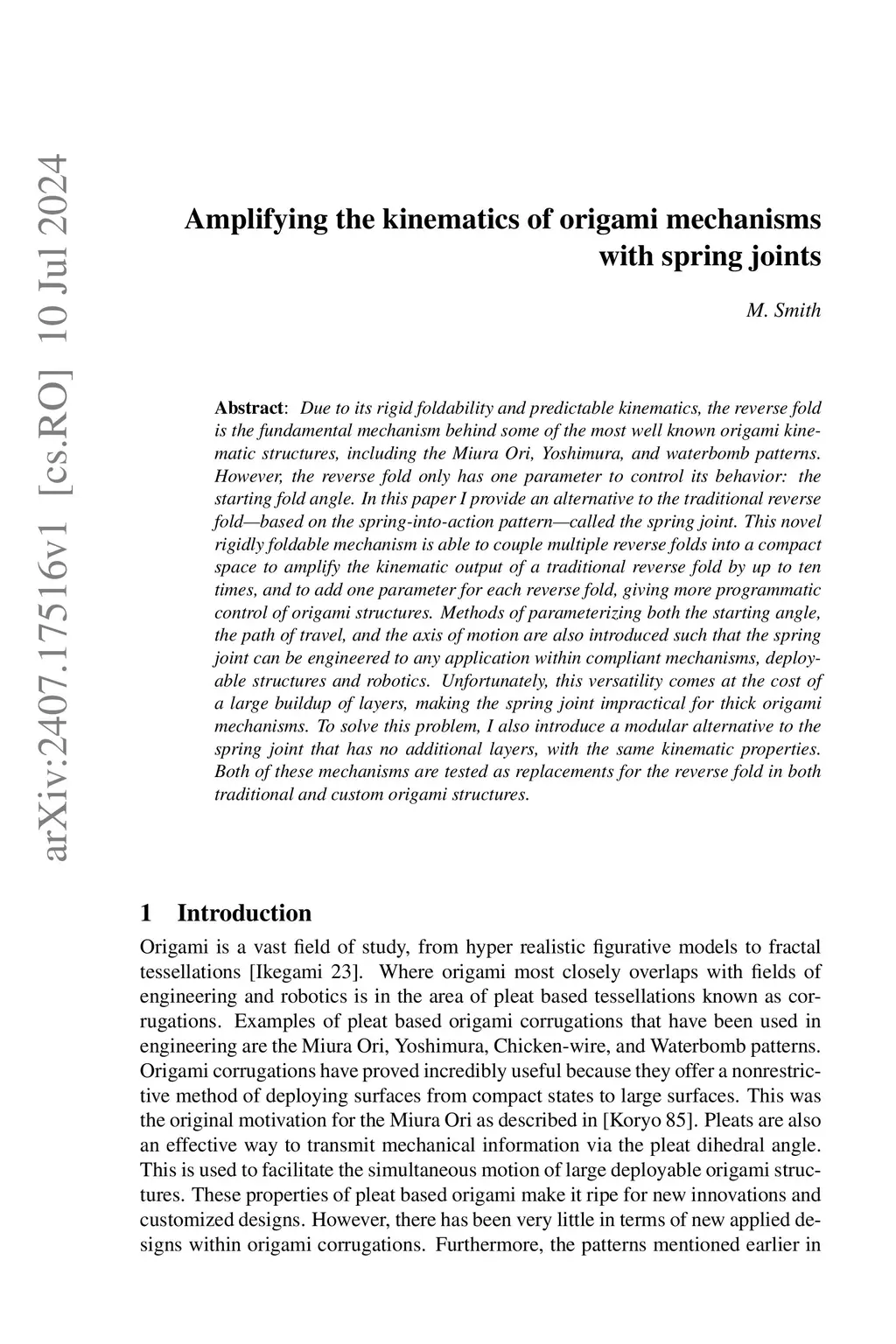 Due to its rigid foldability and predictable kinematics, the reverse fold is the fundamental mechanism behind some of the most well known origami kinematic structures, including the Miura Ori, Yoshimura, and waterbomb patterns. However, the reverse fold only has one parameter to control its behavior: the starting fold angle. In this paper I introduce an alternative to the traditional reverse fold, based on the spring into action pattern, called the spring joint. This novel rigidly foldable mechanism is able to couple multiple reverse folds into a compact space to amplify the kinematic output of a traditional reverse fold by up to ten times, and to add one parameter for each reverse fold, giving more programmatic control of origami structures. Methods of parameterizing both the starting angle, the path of travel, and the axis of motion are also introduced. Unfortunately, this versatility comes at the cost of a large buildup of layers, making the spring joint impractical for thick origami mechanisms. To solve this problem, I also introduce a modular alternative to the spring joint that has no additional layers, with the same kinematic properties. Both of these mechanisms are tested as replacements for the reverse fold in both traditional and custom origami structures.
