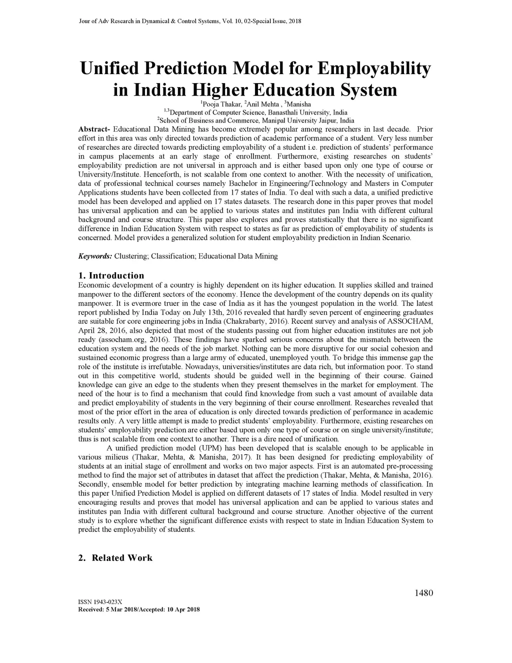 Unified Prediction Model for Employability in Indian Higher Education