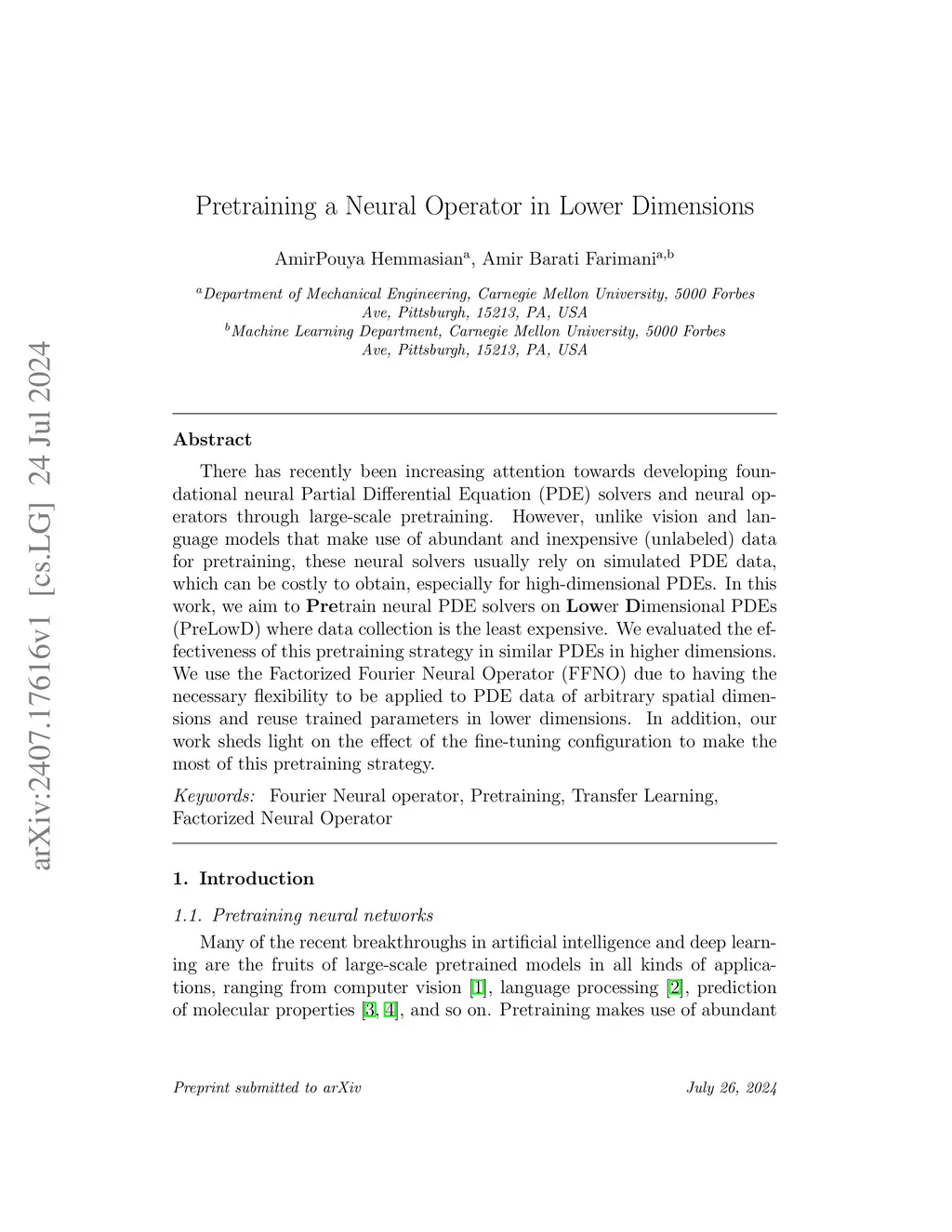 Pretraining a Neural Operator in Lower Dimensions