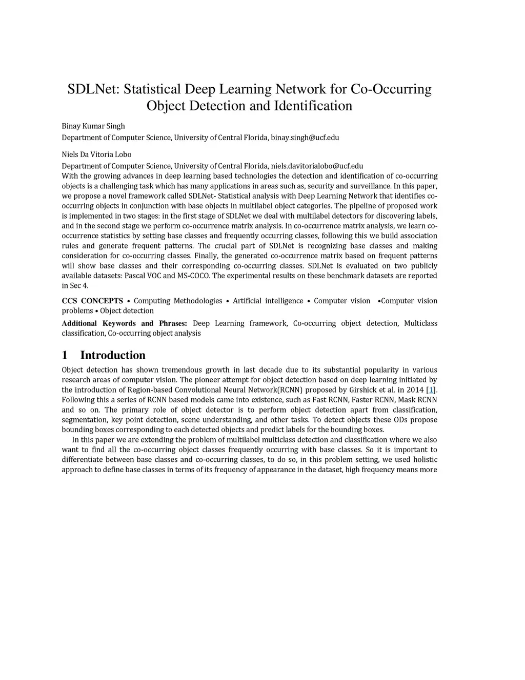 SDLNet: Statistical Deep Learning Network for Co-Occurring Object