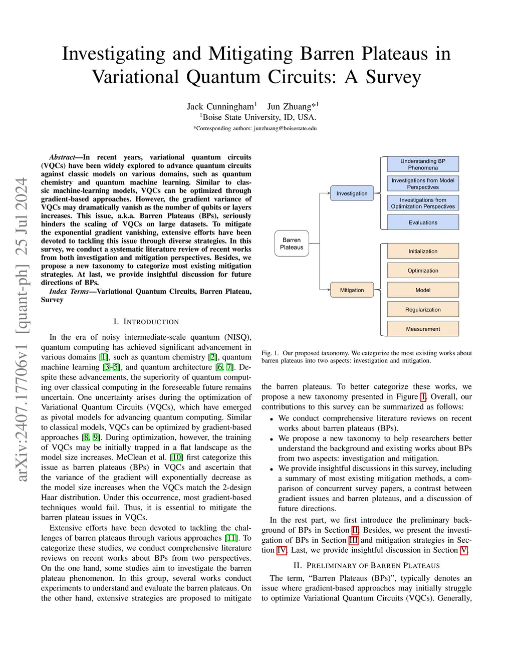Investigating and Mitigating Barren Plateaus in Variational Quantum Circuits: A Survey