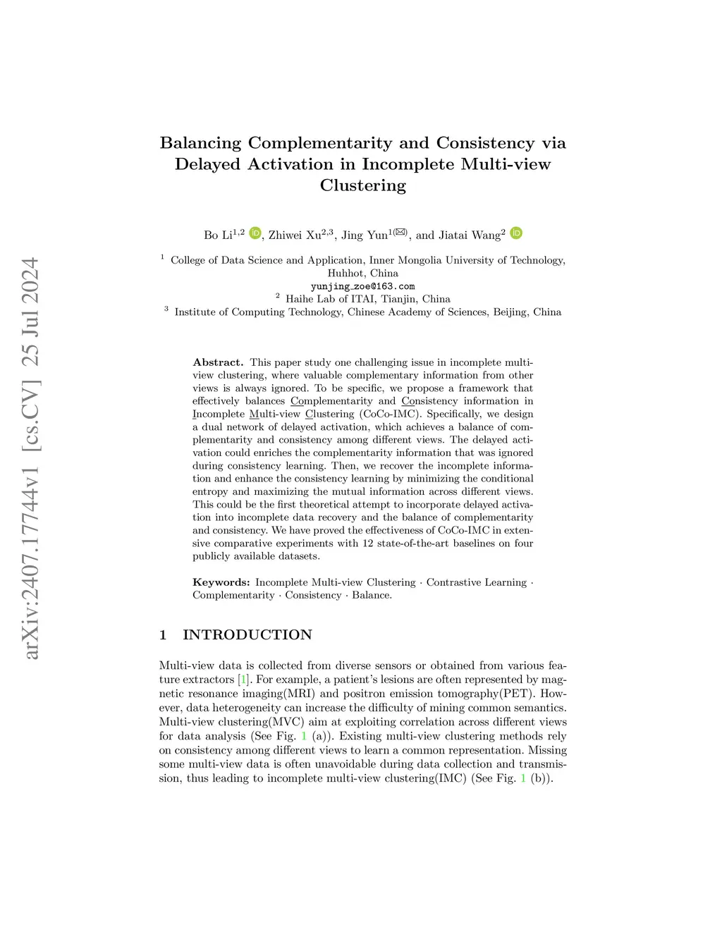 Incomplete Multi-view Clustering