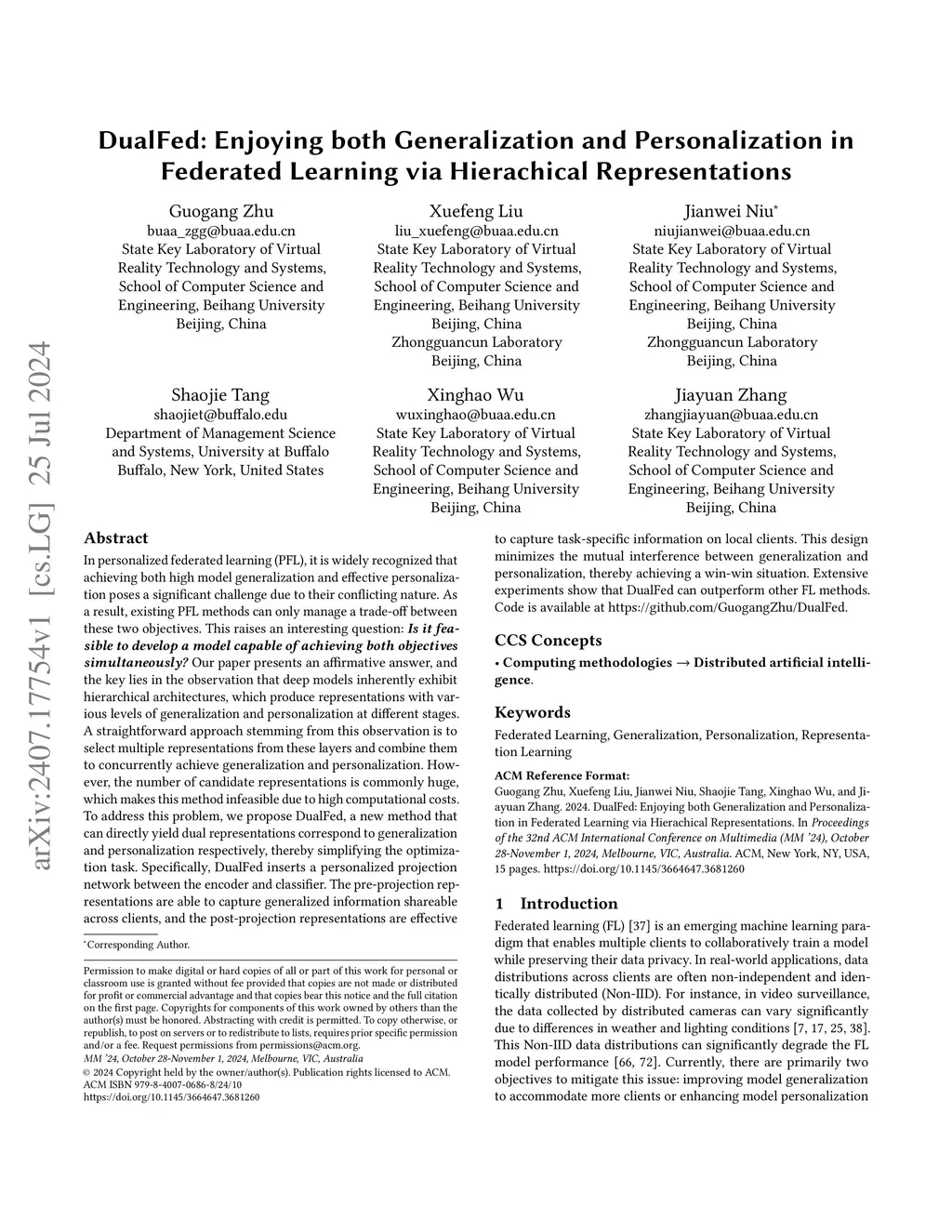 DualFed: Enjoying both Generalization and Personalization in Federated Learning via Hierachical Representations