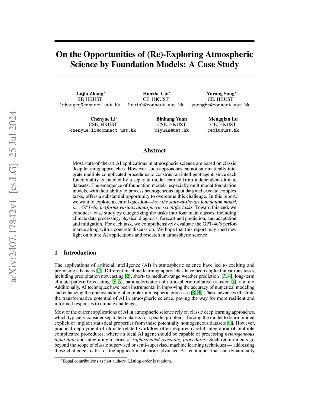 On the Opportunities of (Re)-Exploring Atmospheric Science by Foundation