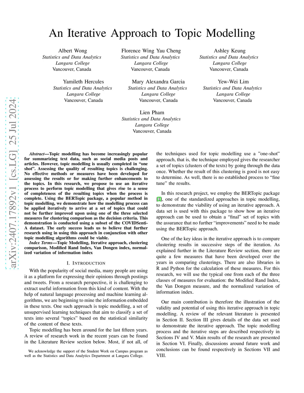 An Iterative Approach to Topic Modelling