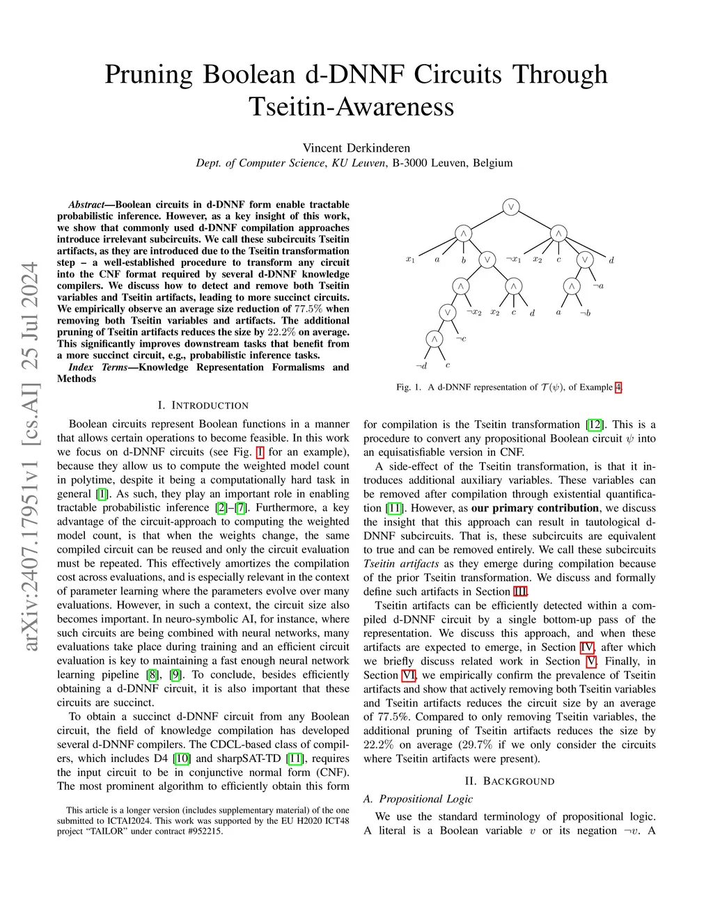 Boolean circuits in d-DNNF form enable tractable probabilistic inference. However, as a key insight of this work, we show that commonly used d-DNNF compilation approaches introduce irrelevant subcircuits. We call these subcircuits Tseitin artifacts, as they are introduced due to the Tseitin transformation step -- a well-established procedure to transform any circuit into the CNF format required by several d-DNNF knowledge compilers. We discuss how to detect and remove both Tseitin variables and Tseitin artifacts, leading to more succinct circuits. We empirically observe an average size reduction of 77.5% when removing both Tseitin variables and artifacts. The additional pruning of Tseitin artifacts reduces the size by 22.2% on average. This significantly improves downstream tasks that benefit from a more succinct circuit, e.g., probabilistic inference tasks.