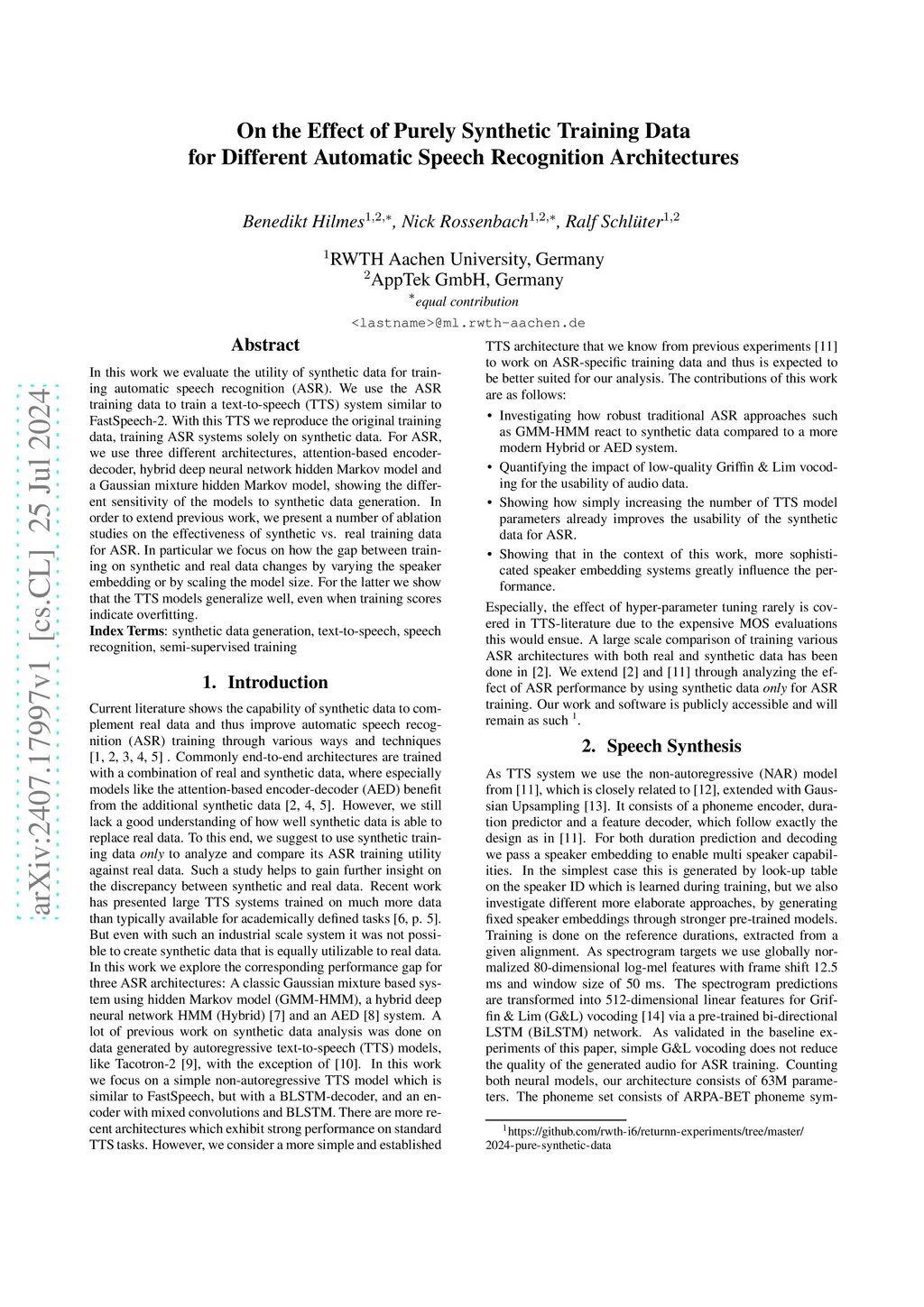 On the Effect of Purely Synthetic Training Data for Different Automatic