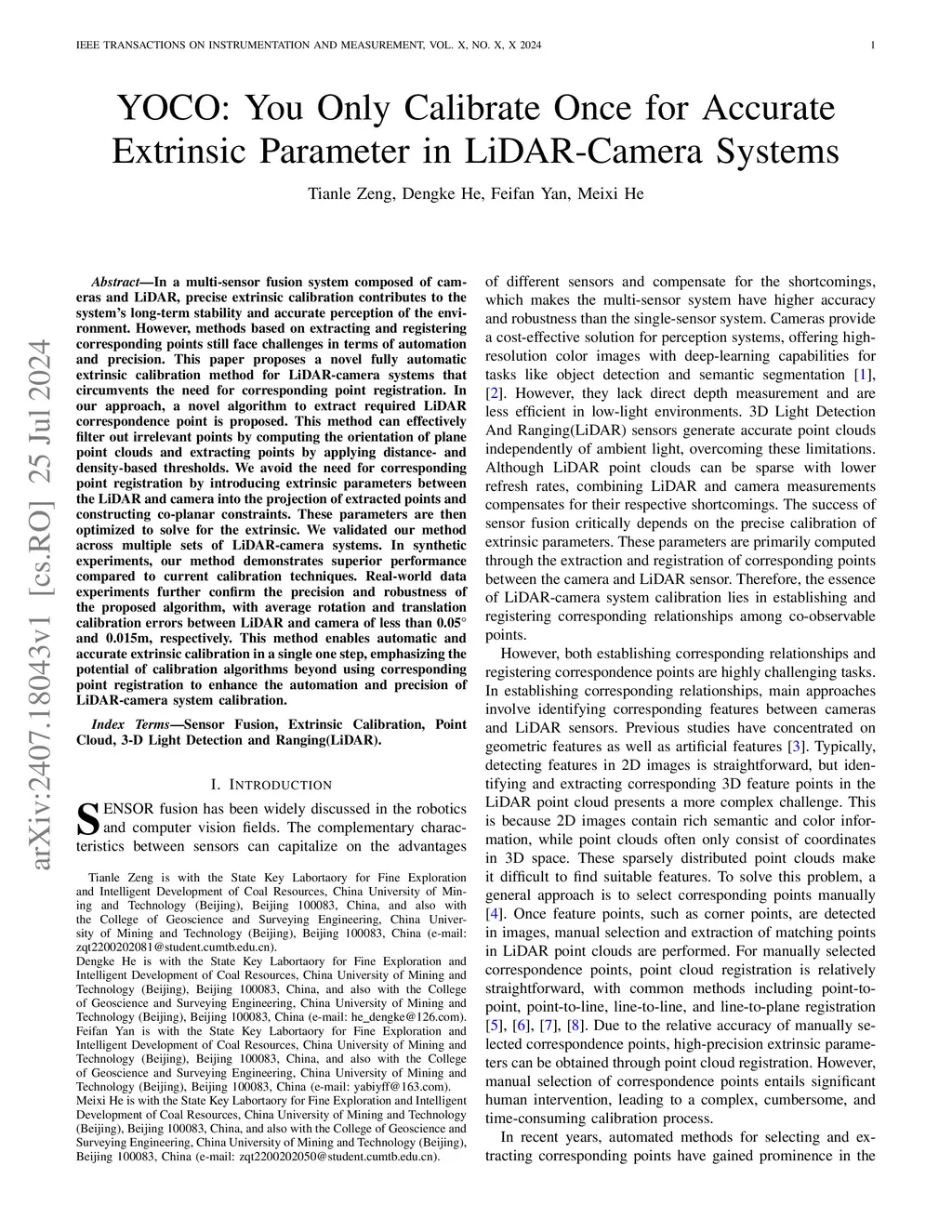 YOCO: You Only Calibrate Once for Accurate Extrinsic Parameter in