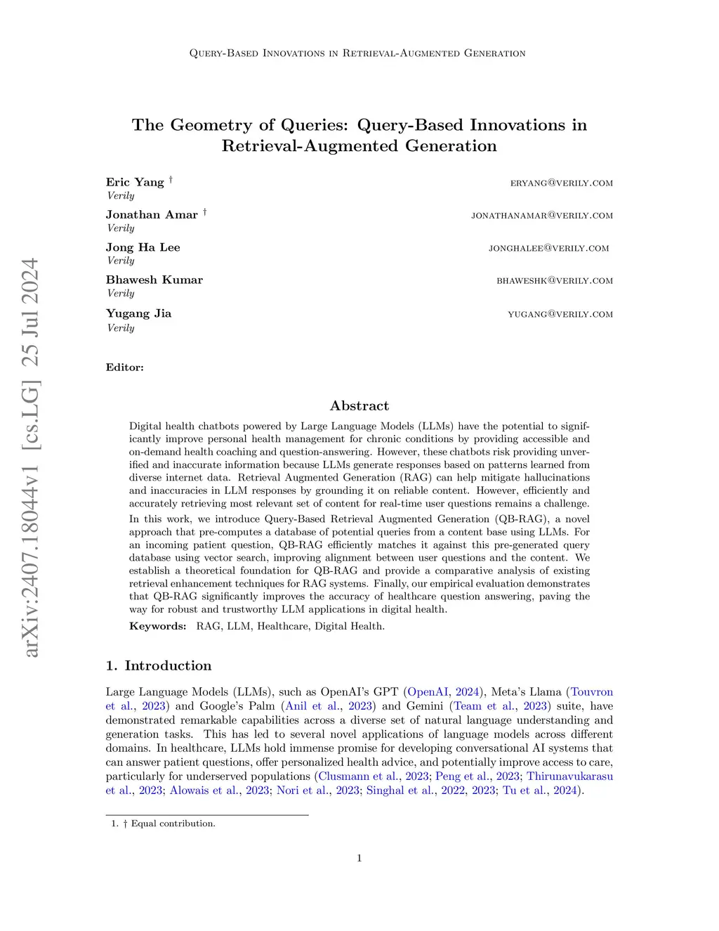The Geometry of Queries: Query-Based Innovations in Retrieval-Augmented Generation for Healthcare QA