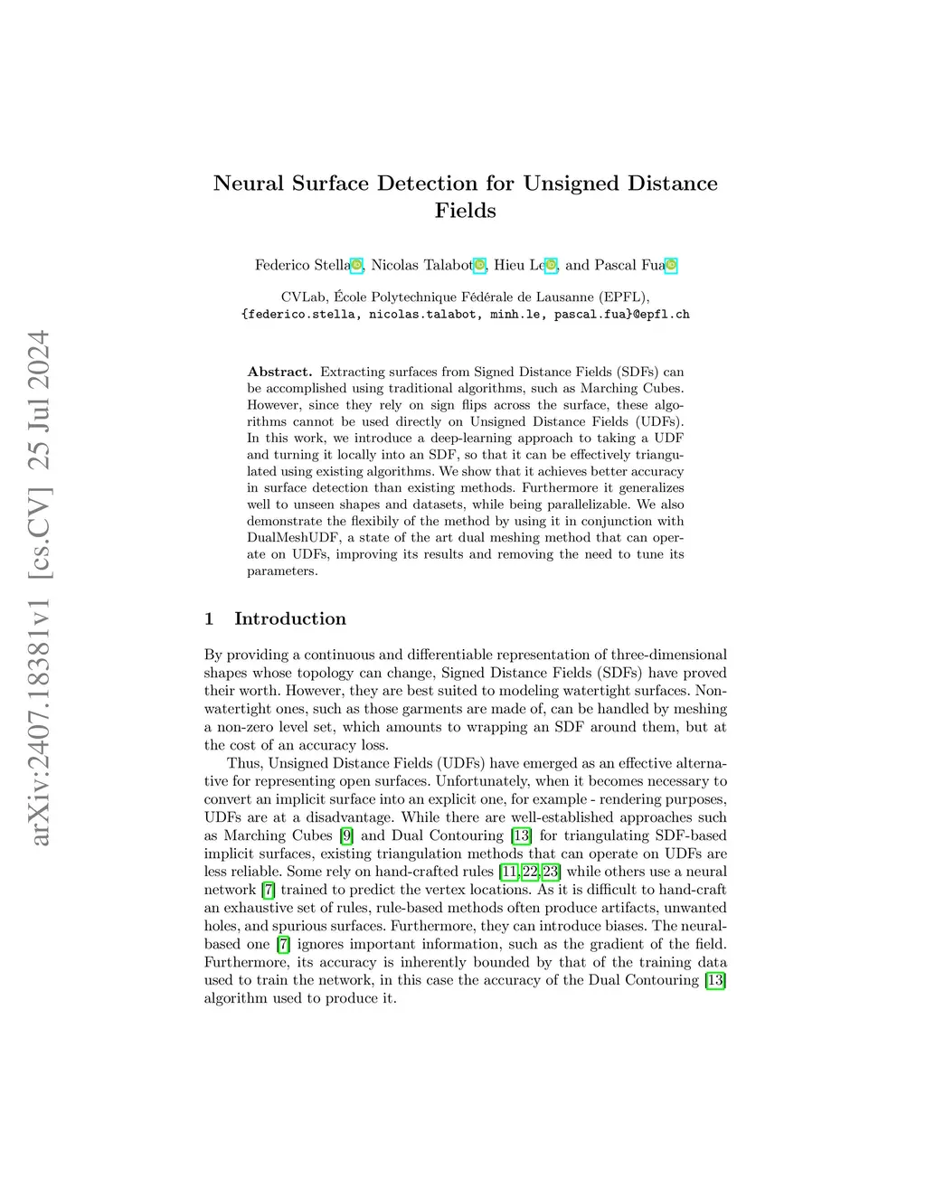Extracting surfaces from Signed Distance Fields (SDFs) can be accomplished using traditional algorithms, such as Marching Cubes. However, since they rely on sign flips across the surface, these algorithms cannot be used directly on Unsigned Distance Fields (UDFs). In this work, we introduce a deep-learning approach to taking a UDF and turning it locally into an SDF, so that it can be effectively triangulated using existing algorithms. We show that it achieves better accuracy in surface detection than existing methods. Furthermore it generalizes well to unseen shapes and datasets, while being parallelizable. We also demonstrate the flexibily of the method by using it in conjunction with DualMeshUDF, a state of the art dual meshing method that can operate on UDFs, improving its results and removing the need to tune its parameters.