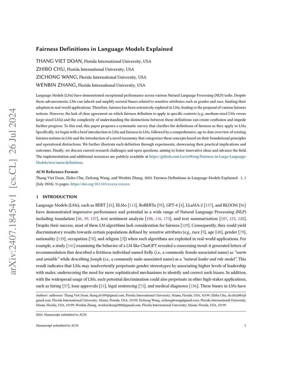 Fairness Definitions in Language Models Explained