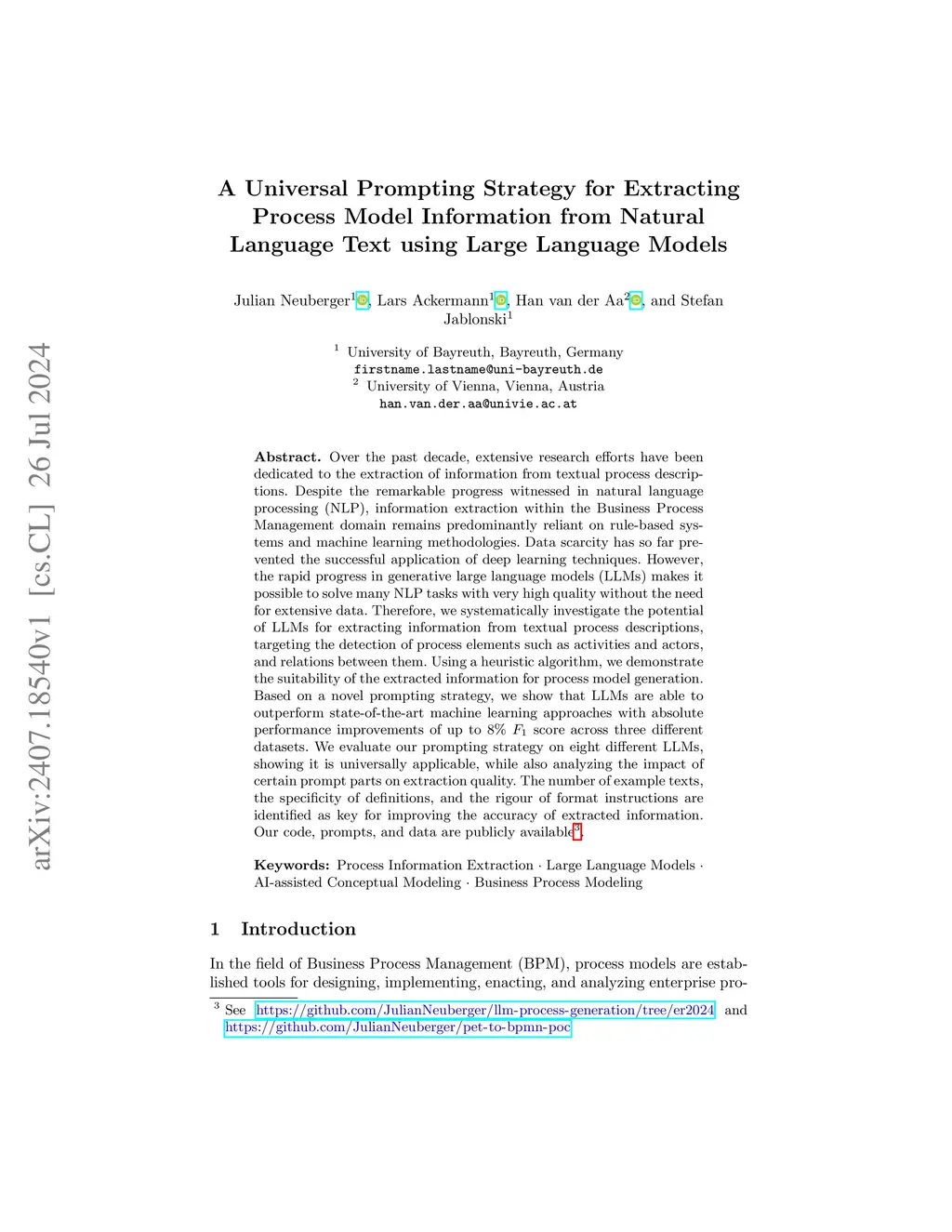 A Universal Prompting Strategy for Extracting Process Model Information