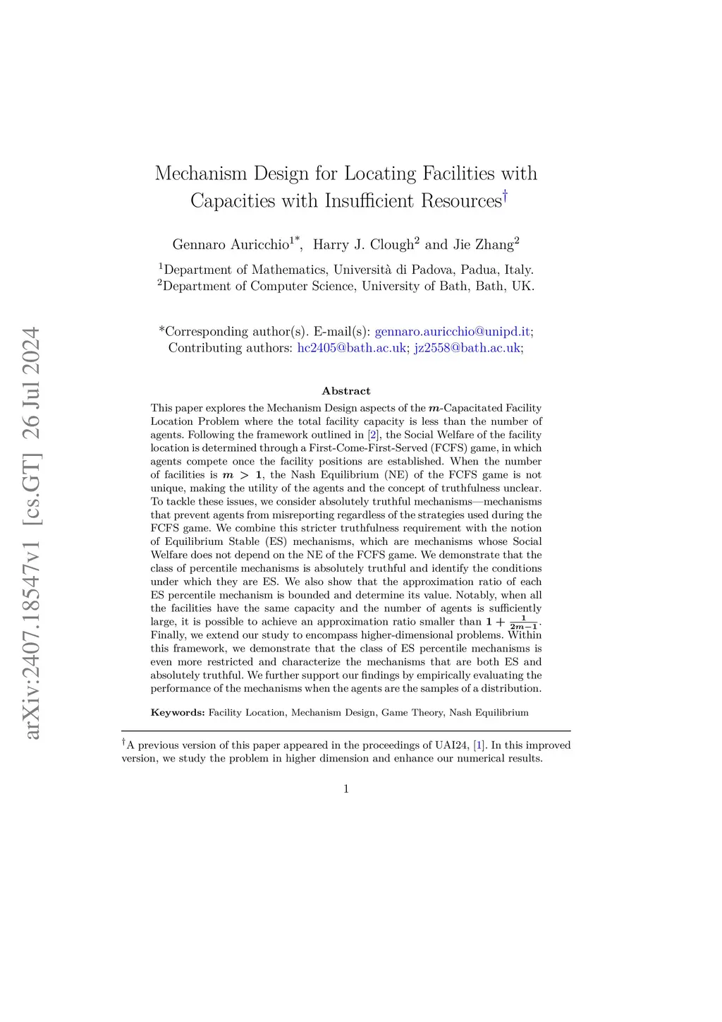This paper explores the Mechanism Design aspects of the -Capacitated Facility Location Problem where the total facility capacity is less than the number of agents. Following the framework outlined by Aziz et al., the Social Welfare of the facility location is determined through a First-Come-First-Served (FCFS) game, in which agents compete once the facility positions are established. When the number of facilities is , the Nash Equilibrium (NE) of the FCFS game is not unique, making the utility of the agents and the concept of truthfulness unclear. To tackle these issues, we consider absolutely truthful mechanisms, i.e. mechanisms that prevent agents from misreporting regardless of the strategies used during the FCFS game. We combine this stricter truthfulness requirement with the notion of Equilibrium Stable (ES) mechanisms, which are mechanisms whose Social Welfare does not depend on the NE of the FCFS game. We demonstrate that the class of percentile mechanisms is absolutely truthful and identify the conditions under which they are ES. We also show that the approximation ratio of each ES percentile mechanism is bounded and determine its value. Notably, when all the facilities have the same capacity and the number of agents is sufficiently large, it is possible to achieve an approximation ratio smaller than . Finally, we extend our study to encompass higher-dimensional problems. Within this framework, we demonstrate that the class of ES percentile mechanisms is even more restricted and characterize the mechanisms that are both ES and absolutely truthful. We further support our findings by empirically evaluating the performance of the mechanisms when the agents are the samples of a distribution.