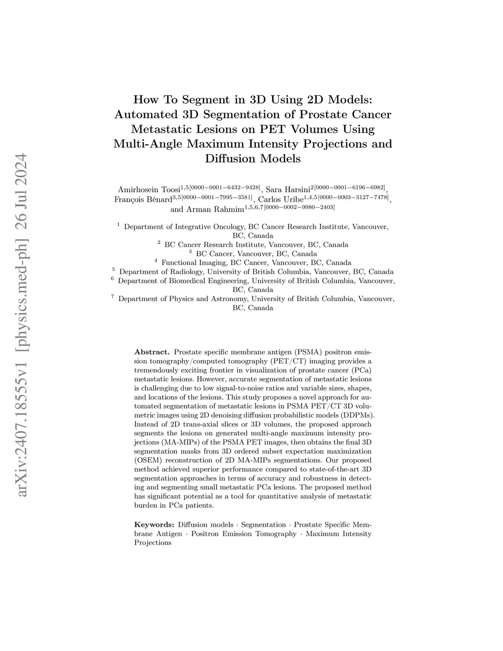 Prostate Cancer Metastatic Lesions on PET Volumes Using Multi-Angle Maximum