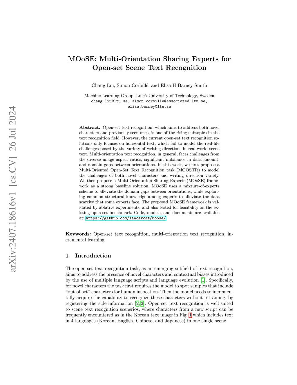 MOoSE: Multi-Orientation Sharing Experts for Open-set Scene Text