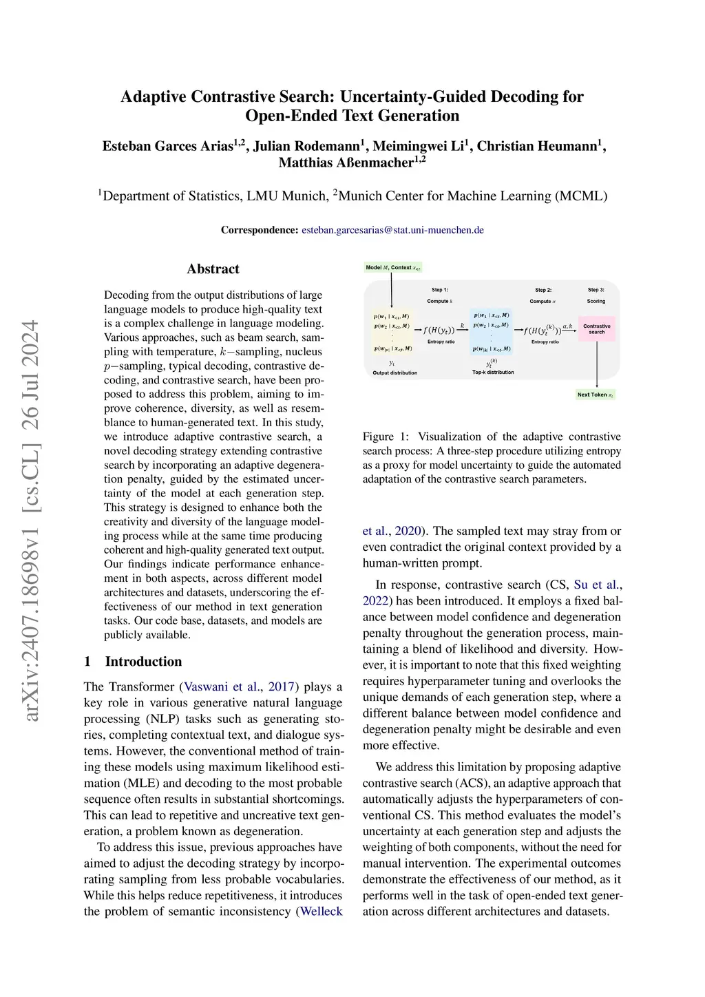 Adaptive Contrastive Search: Uncertainty-Guided Decoding for Open-Ended