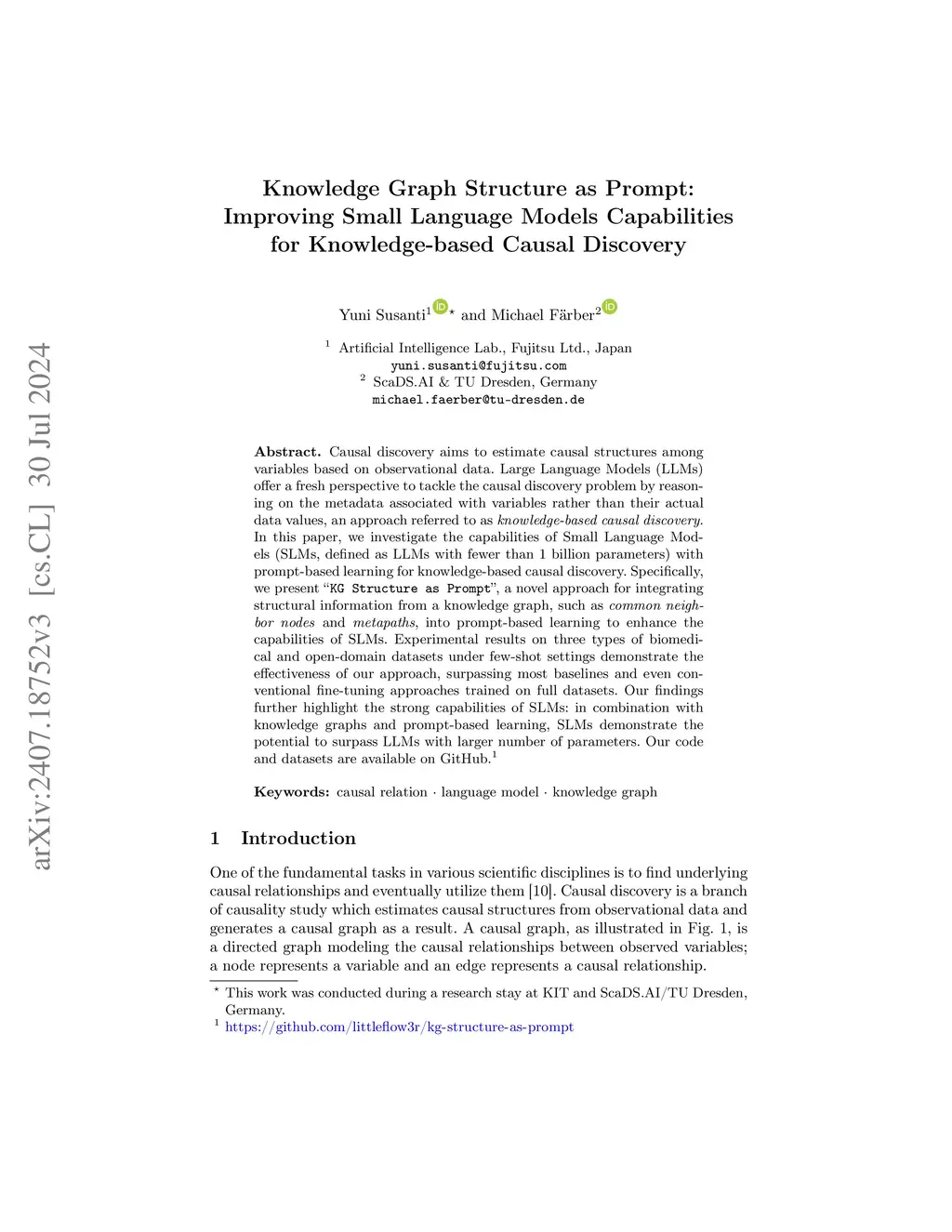 Knowledge Graph Structure as Prompt: Improving Small Language Models