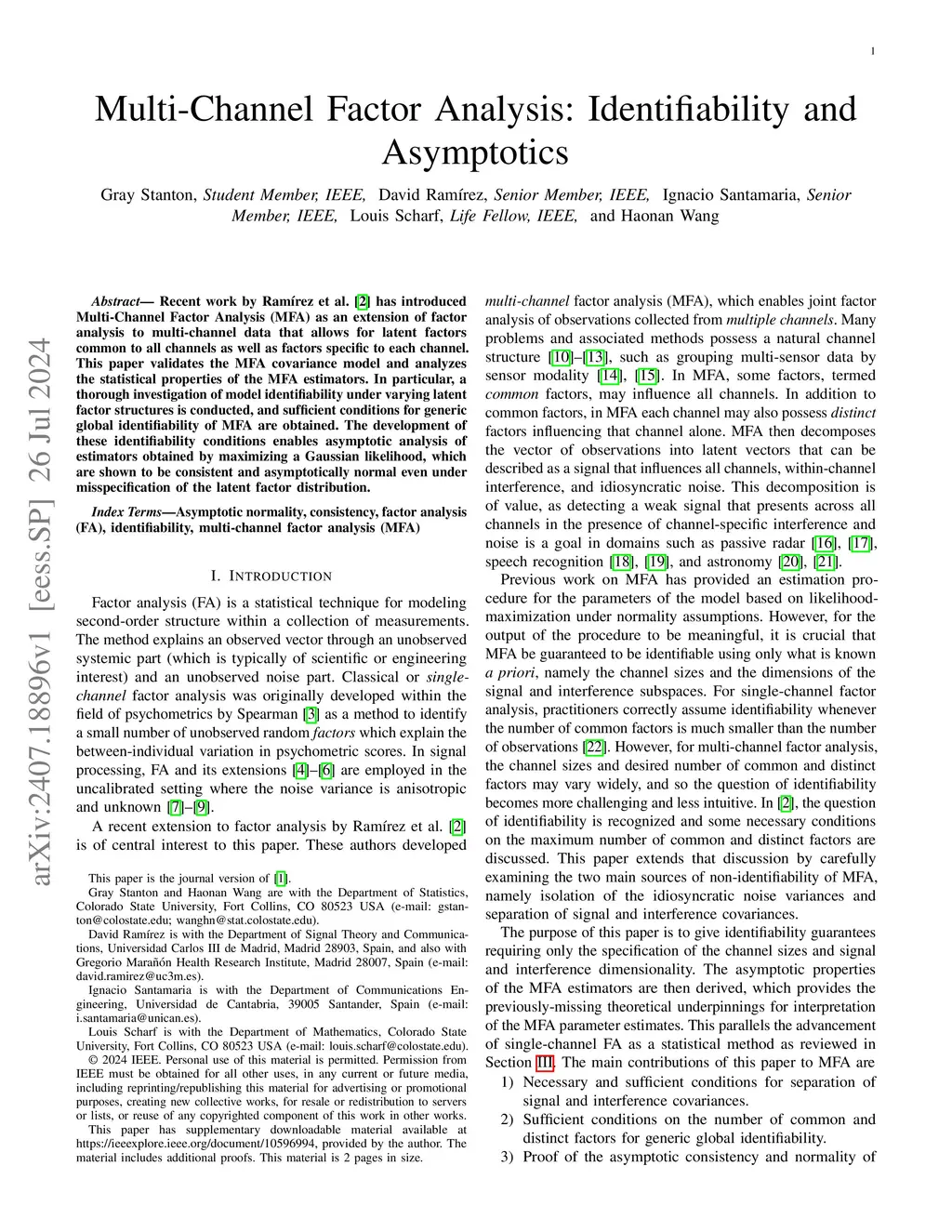 Multi-Channel Factor Analysis: Identifiability and Asymptotics