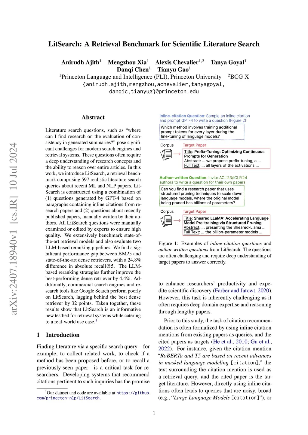 LitSearch: A Retrieval Benchmark for Scientific Literature Search