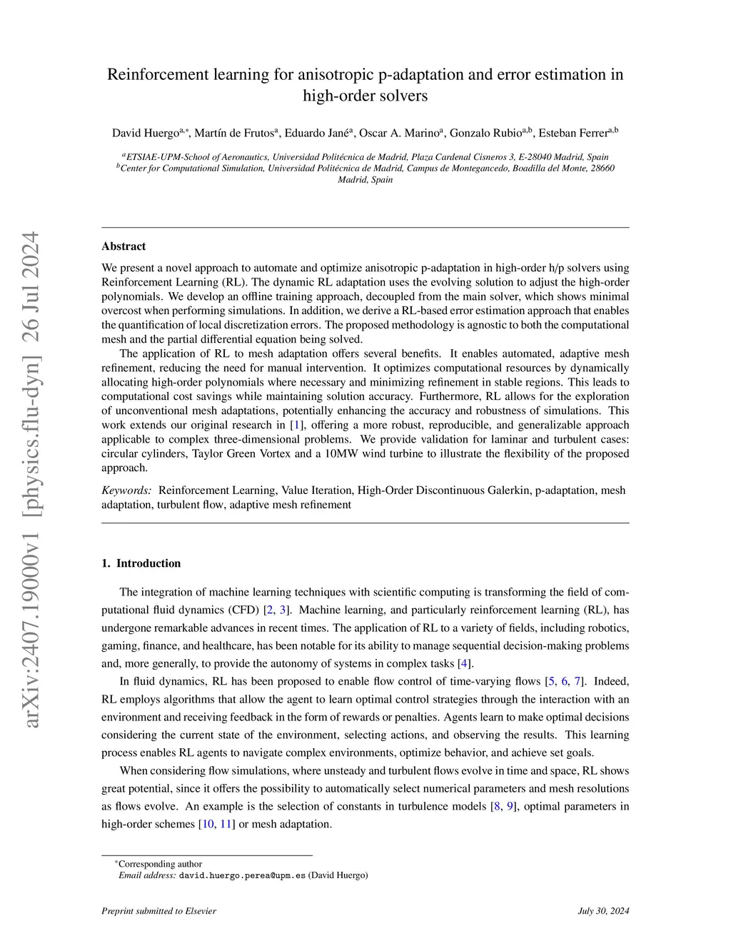 We present a novel approach to automate and optimize anisotropic p-adaptation in high-order h/p solvers using Reinforcement Learning (RL). The dynamic RL adaptation uses the evolving solution to adjust the high-order polynomials. We develop an offline training approach, decoupled from the main solver, which shows minimal overcost when performing simulations. In addition, we derive a RL-based error estimation approach that enables the quantification of local discretization errors. The proposed methodology is agnostic to both the computational mesh and the partial differential equation being solved. The application of RL to mesh adaptation offers several benefits. It enables automated, adaptive mesh refinement, reducing the need for manual intervention. It optimizes computational resources by dynamically allocating high-order polynomials where necessary and minimizing refinement in stable regions. This leads to computational cost savings while maintaining solution accuracy. Furthermore, RL allows for the exploration of unconventional mesh adaptations, potentially enhancing the accuracy and robustness of simulations. This work extends our original research, offering a more robust, reproducible, and generalizable approach applicable to complex three-dimensional problems. We provide validation for laminar and turbulent cases: circular cylinders, Taylor Green Vortex and a 10MW wind turbine to illustrate the flexibility of the proposed approach.