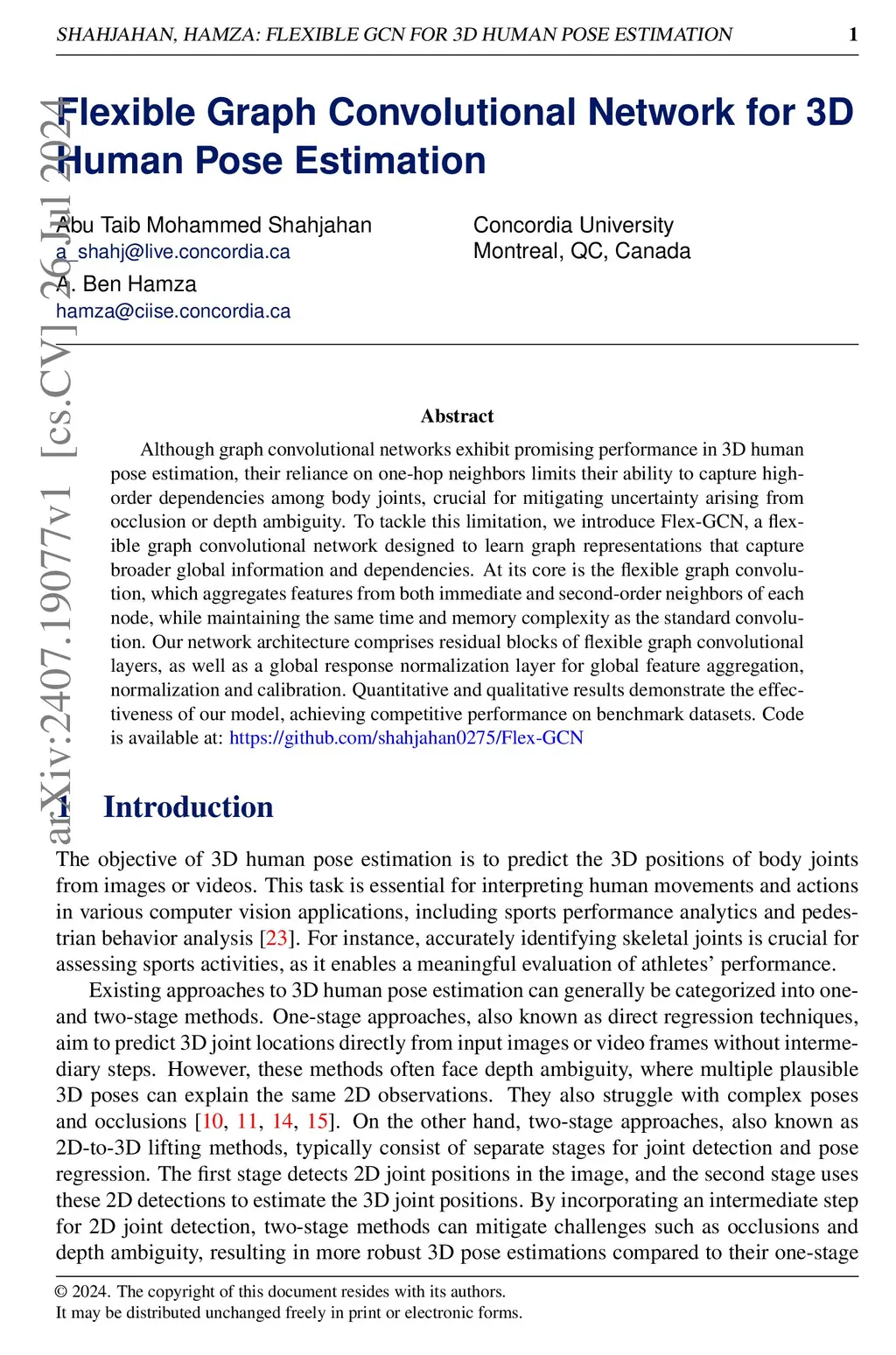 Flexible graph convolutional network for 3D human pose estimation