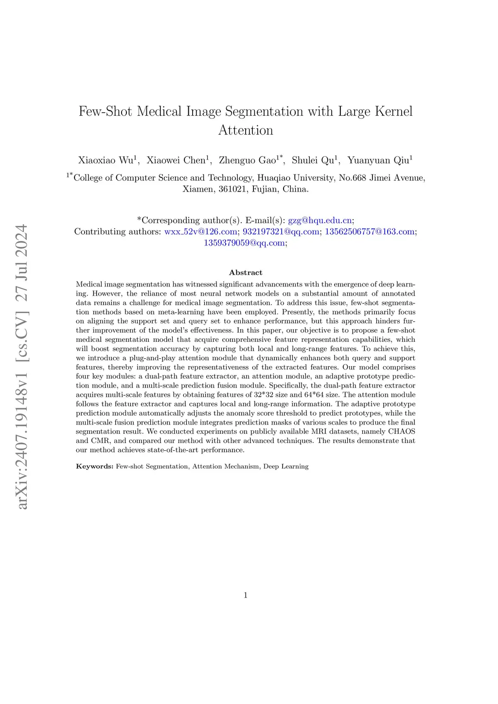 Few-Shot Medical Image Segmentation with Large Kernel Attention