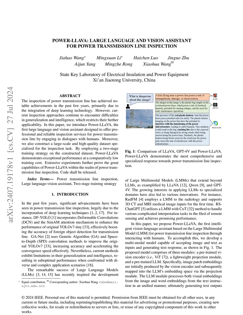 Power-LLaVA: Large Language and Vision Assistant for Power Transmission