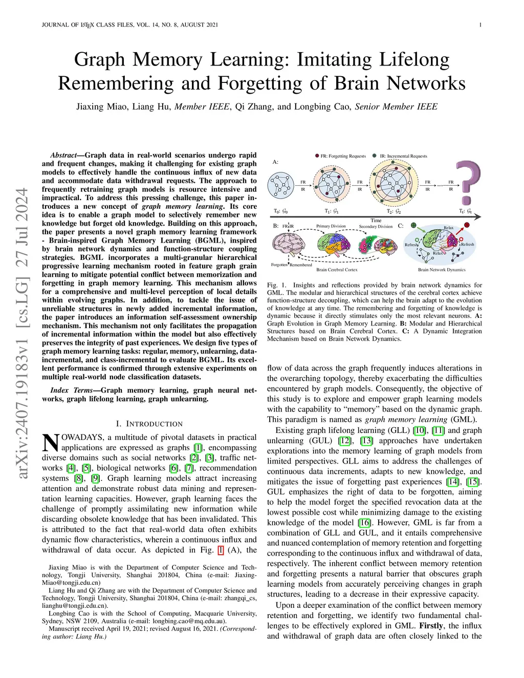 Graph Memory Learning: Imitating Lifelong Remembering and Forgetting of Brain Networks