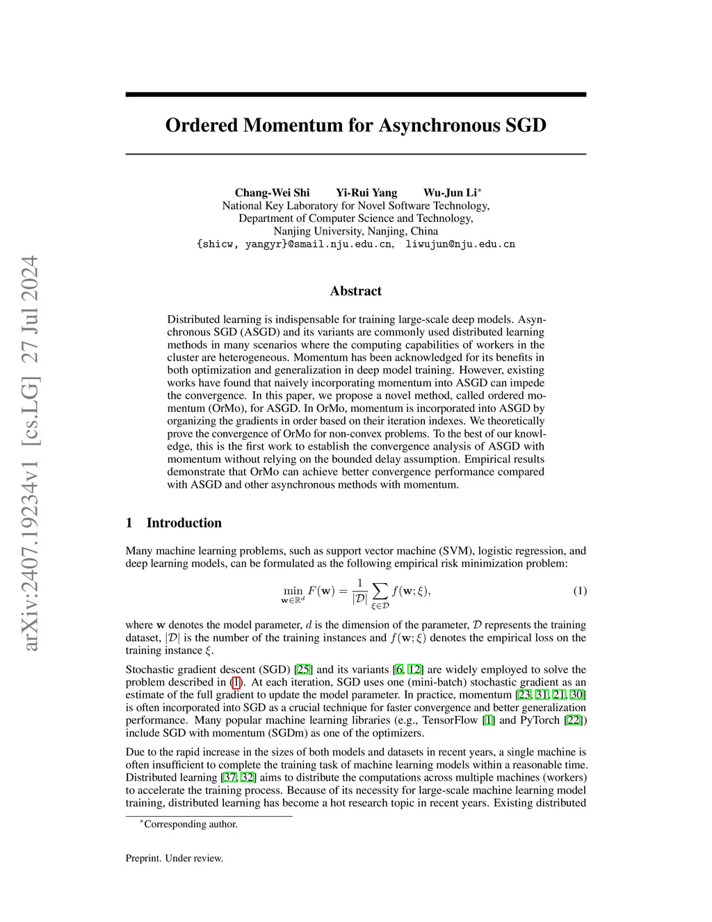 Ordered Momentum for Asynchronous SGD