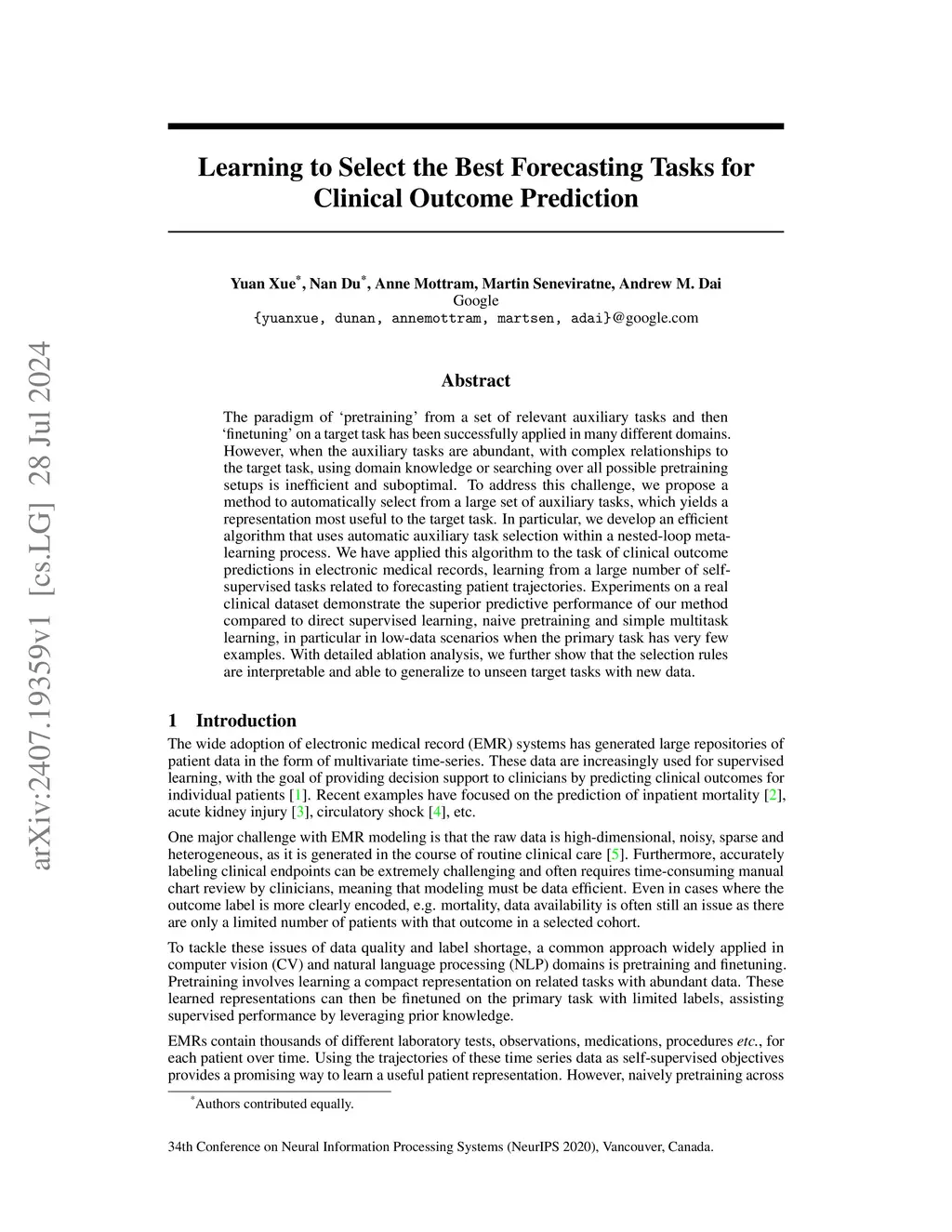 Learning to Select the Best Forecasting Tasks for Clinical Outcome