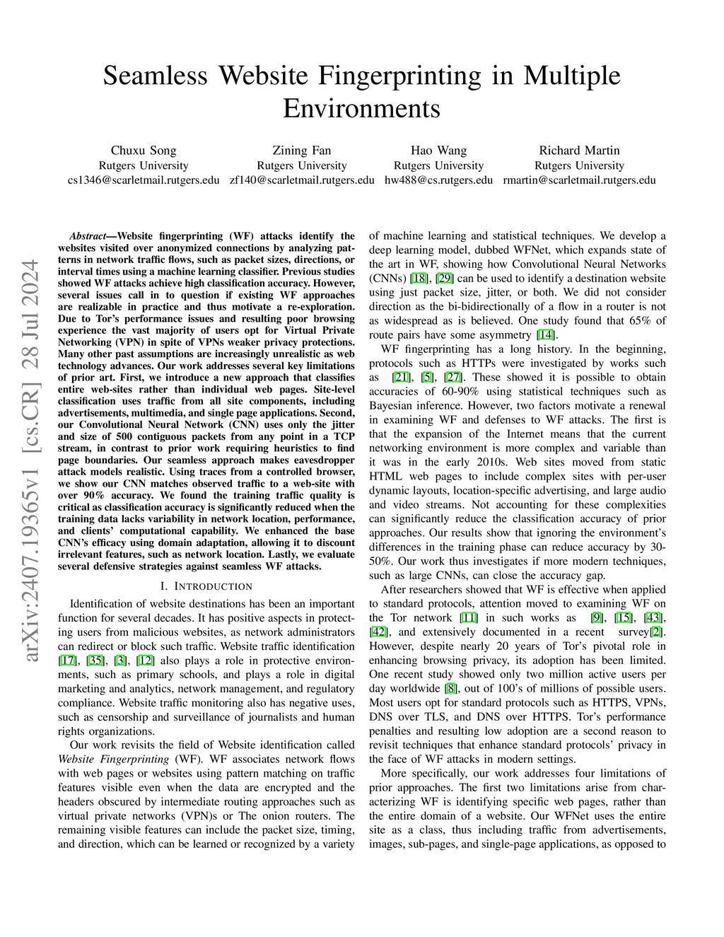 Seamless Website Fingerprinting in Multiple Environments
