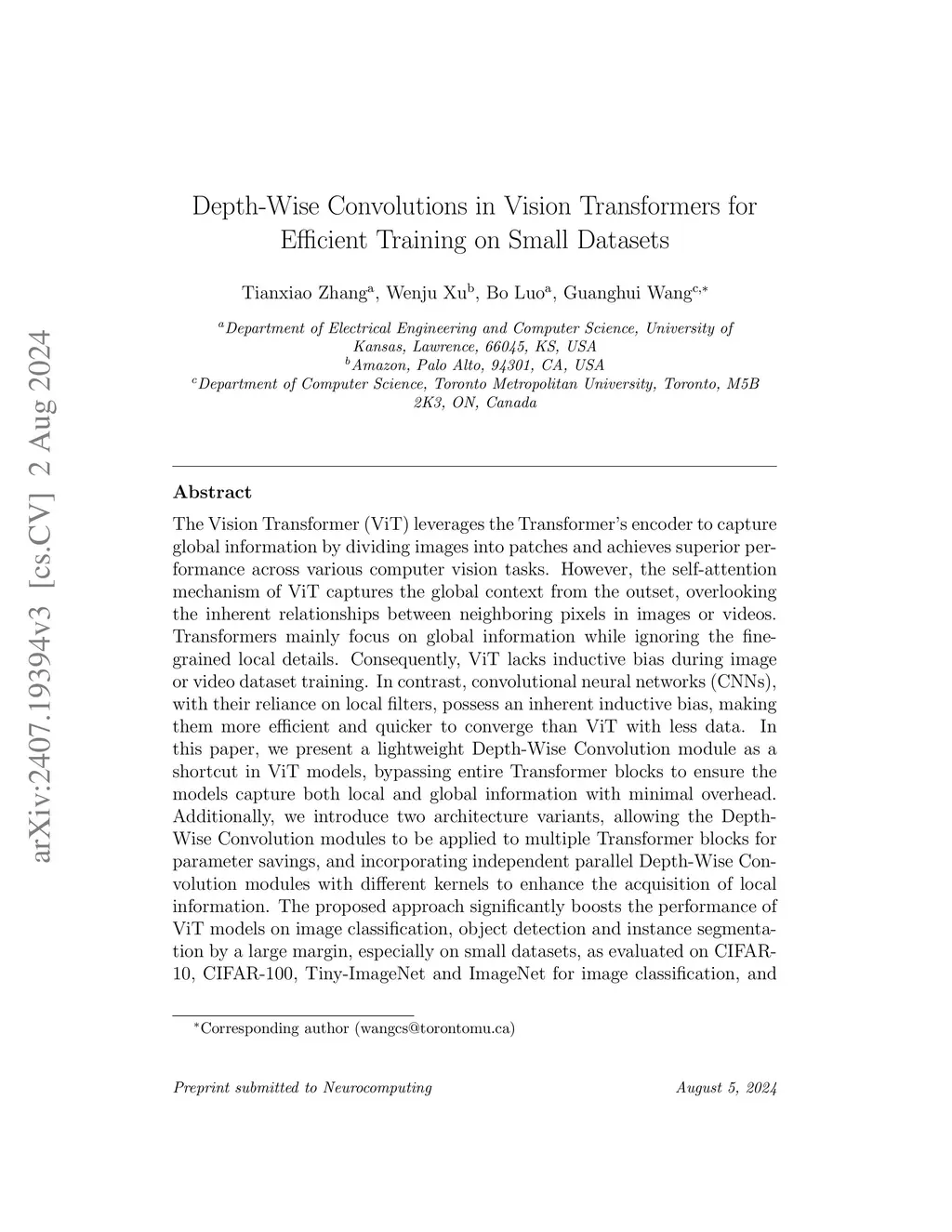 Depth-Wise Convolutions in Vision Transformers for Efficient Training on