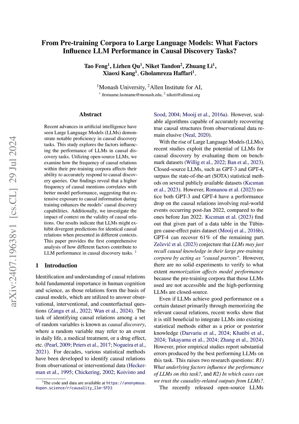 This study investigates the efficacy of Large Language Models (LLMs) in causal discovery. Using newly available open-source LLMs, OLMo and BLOOM, which provide access to their pre-training corpora, we investigate how LLMs address causal discovery through three research questions. We examine: (i) the impact of memorization for accurate causal relation prediction, (ii) the influence of incorrect causal relations in pre-training data, and (iii) the contextual nuances that influence LLMs' understanding of causal relations. Our findings indicate that while LLMs are effective in recognizing causal relations that occur frequently in pre-training data, their ability to generalize to new or rare causal relations is limited. Moreover, the presence of incorrect causal relations significantly undermines the confidence of LLMs in corresponding correct causal relations, and the contextual information critically affects the outcomes of LLMs to discern causal connections between random variables.