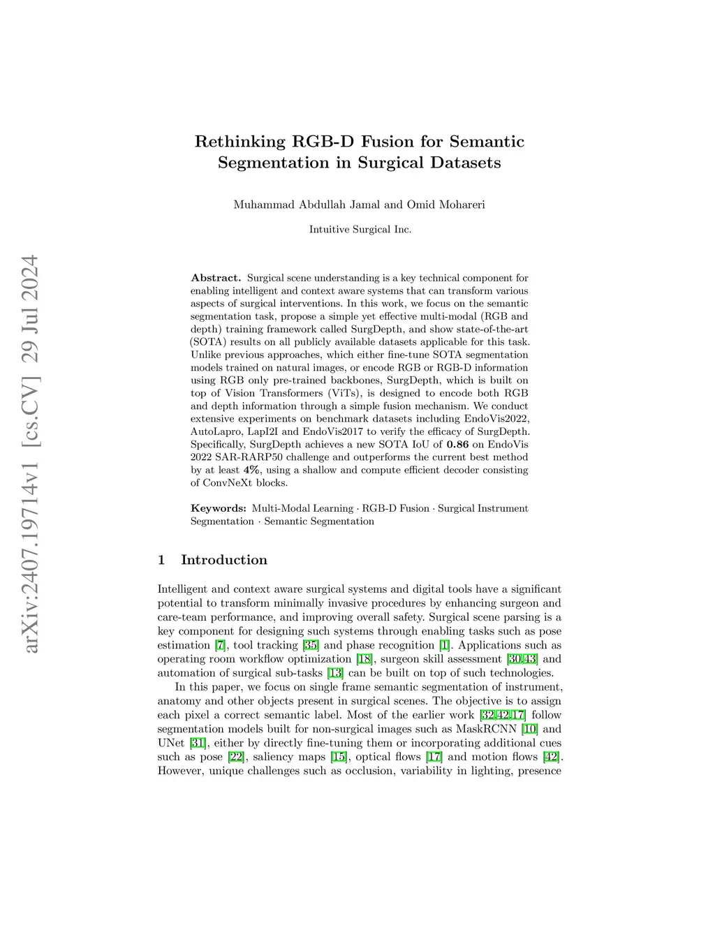 Rethinking RGB-D Fusion for Semantic Segmentation in Surgical Datasets