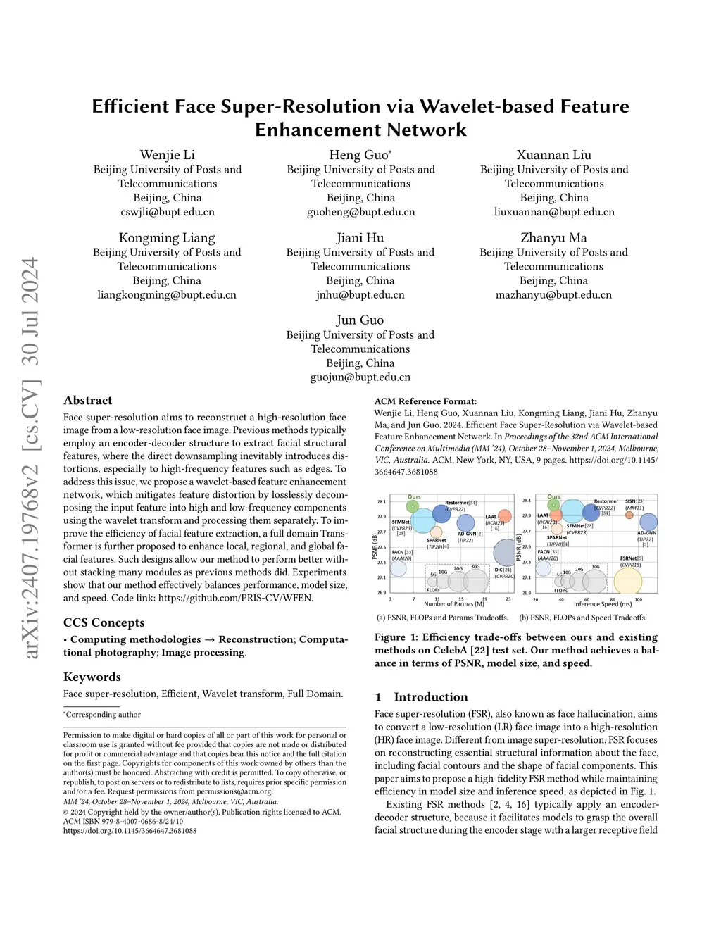 Efficient Face Super-Resolution via Wavelet-based Feature Enhancement Network