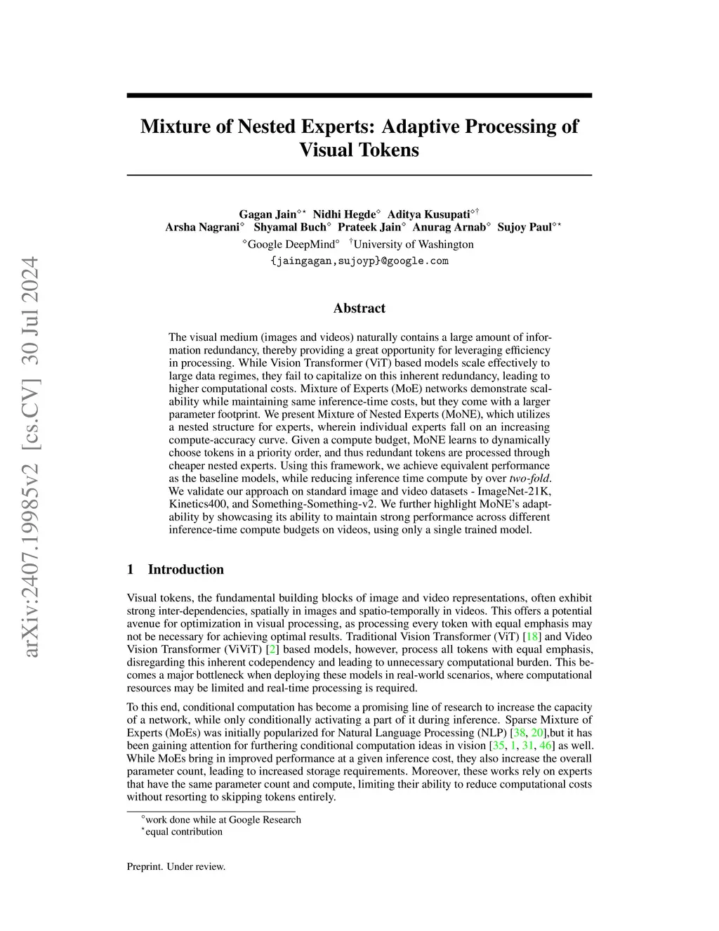 Mixture of Nested Experts: Adaptive Processing of Visual Tokens