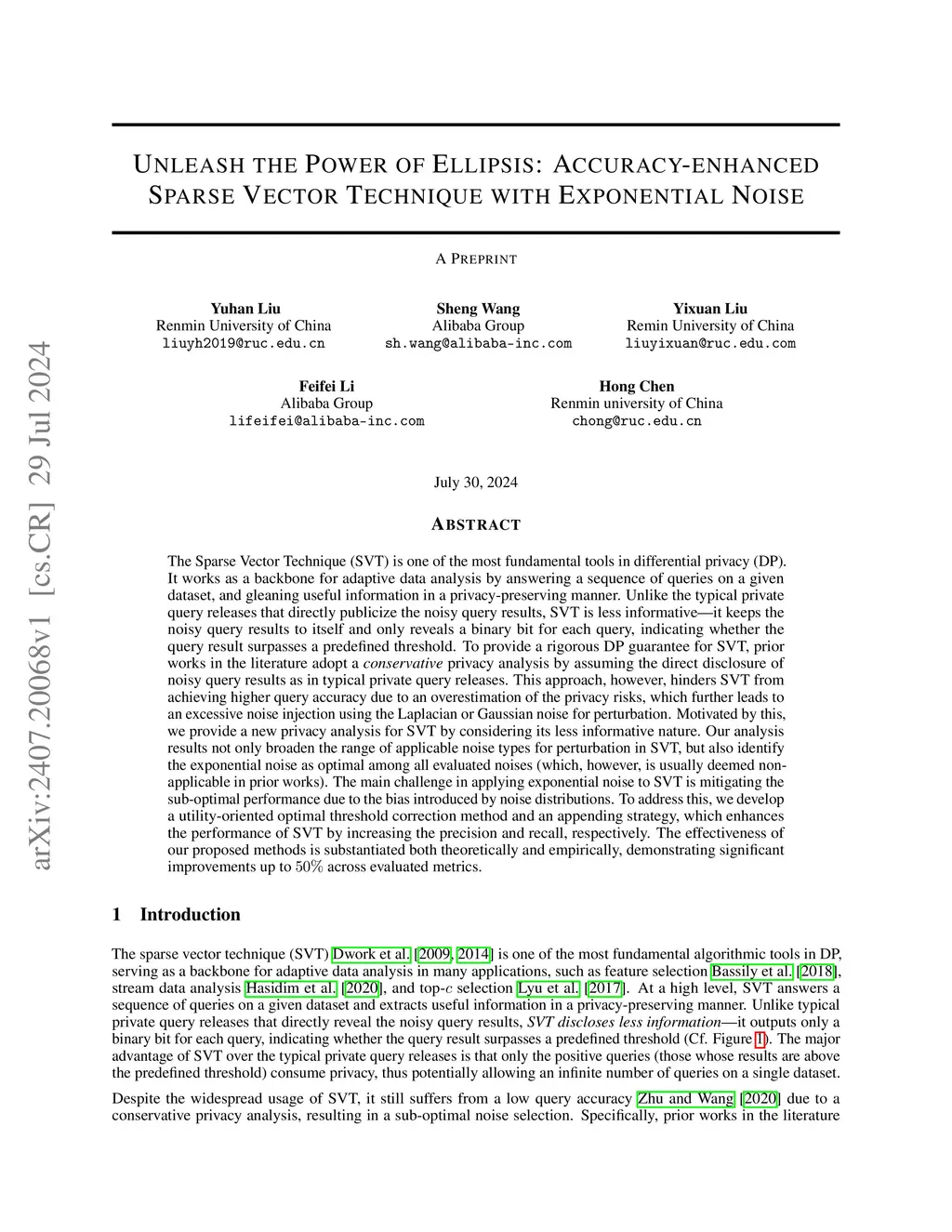 Unleash the Power of Ellipsis: Accuracy-enhanced Sparse Vector Technique