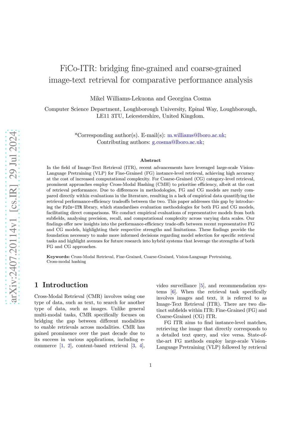 FiCo-ITR: bridging fine-grained and coarse-grained image-text retrieval for comparative performance analysis