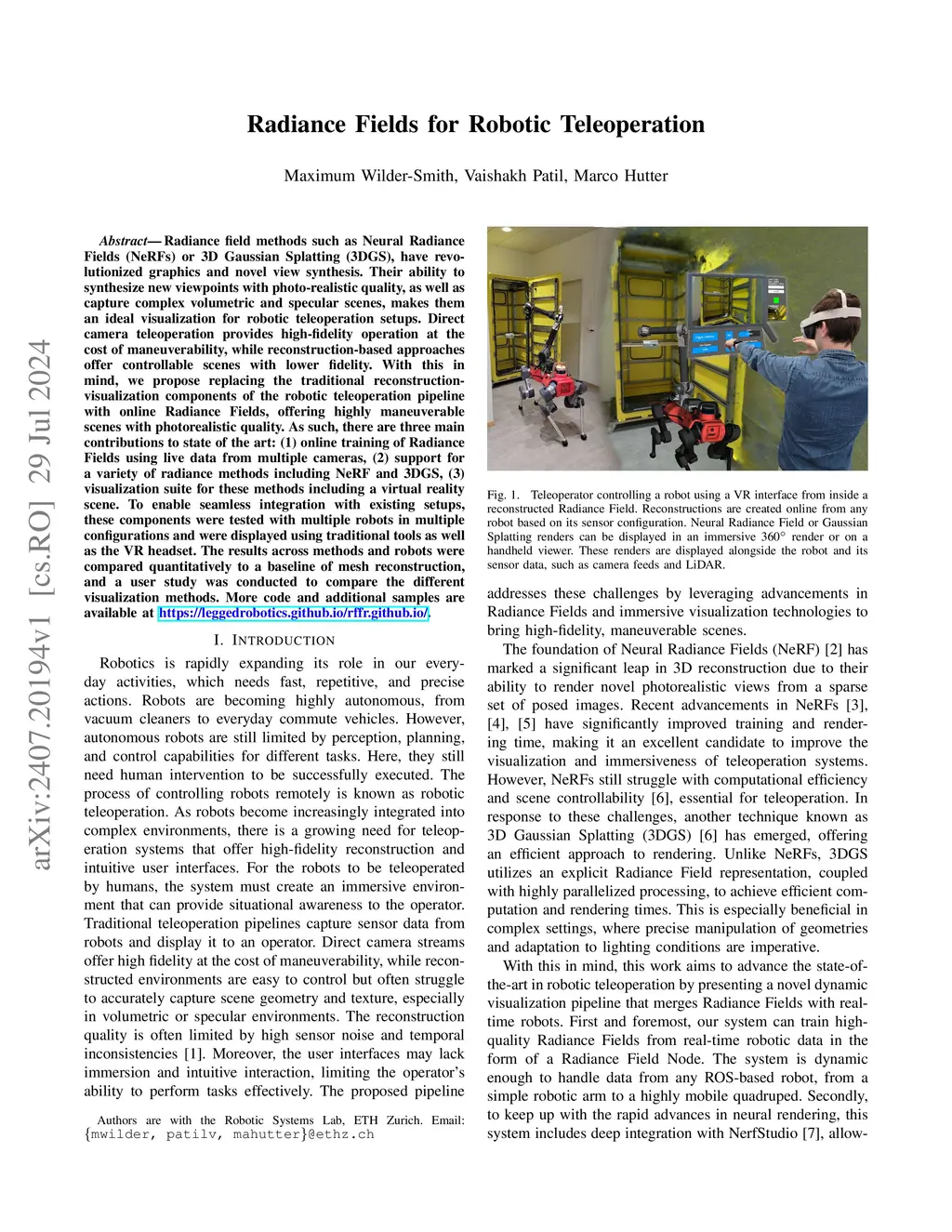 Radiance Fields for Robotic Teleoperation