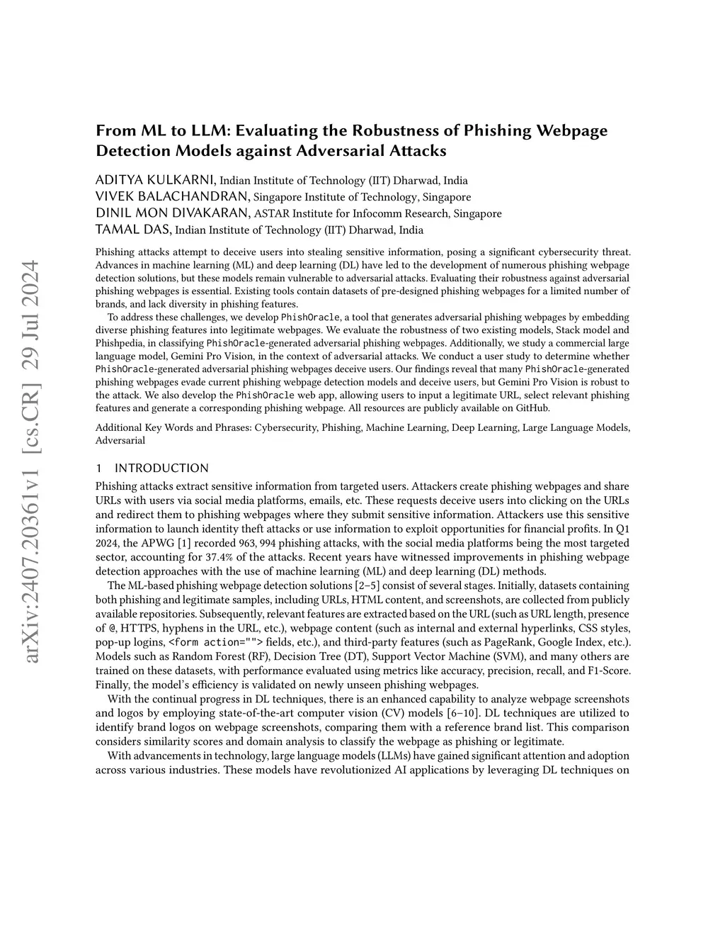 Phishing attacks attempt to deceive users into stealing sensitive information, posing a significant cybersecurity threat. Advances in machine learning (ML) and deep learning (DL) have led to the development of numerous phishing webpage detection solutions, but these models remain vulnerable to adversarial attacks. Evaluating their robustness against adversarial phishing webpages is essential. Existing tools contain datasets of pre-designed phishing webpages for a limited number of brands, and lack diversity in phishing features.To address these challenges, we develop PhishOracle, a tool that generates adversarial phishing webpages by embedding diverse phishing features into legitimate webpages. We evaluate the robustness of three existing task-specific models - Stack model, VisualPhishNet, and Phishpedia - against PhishOracle-generated adversarial phishing webpages and observe a significant drop in their detection rates. In contrast, a multimodal large language model (MLLM)-based phishing detector demonstrates stronger robustness against these adversarial attacks but still is prone to evasion. Our findings highlight the vulnerability of phishing detection models to adversarial attacks, emphasizing the need for more robust detection approaches. Furthermore, we conduct a user study to evaluate whether PhishOracle-generated adversarial phishing webpages can deceive users. The results show that many of these phishing webpages evade not only existing detection models but also users.