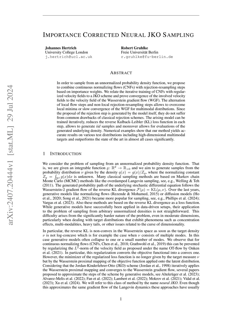 Importance Corrected Neural JKO Sampling