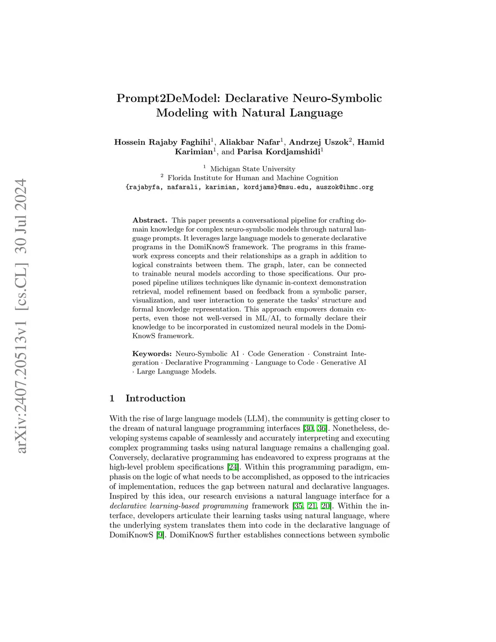 Prompt2DeModel: Declarative Neuro-Symbolic Modeling with Natural