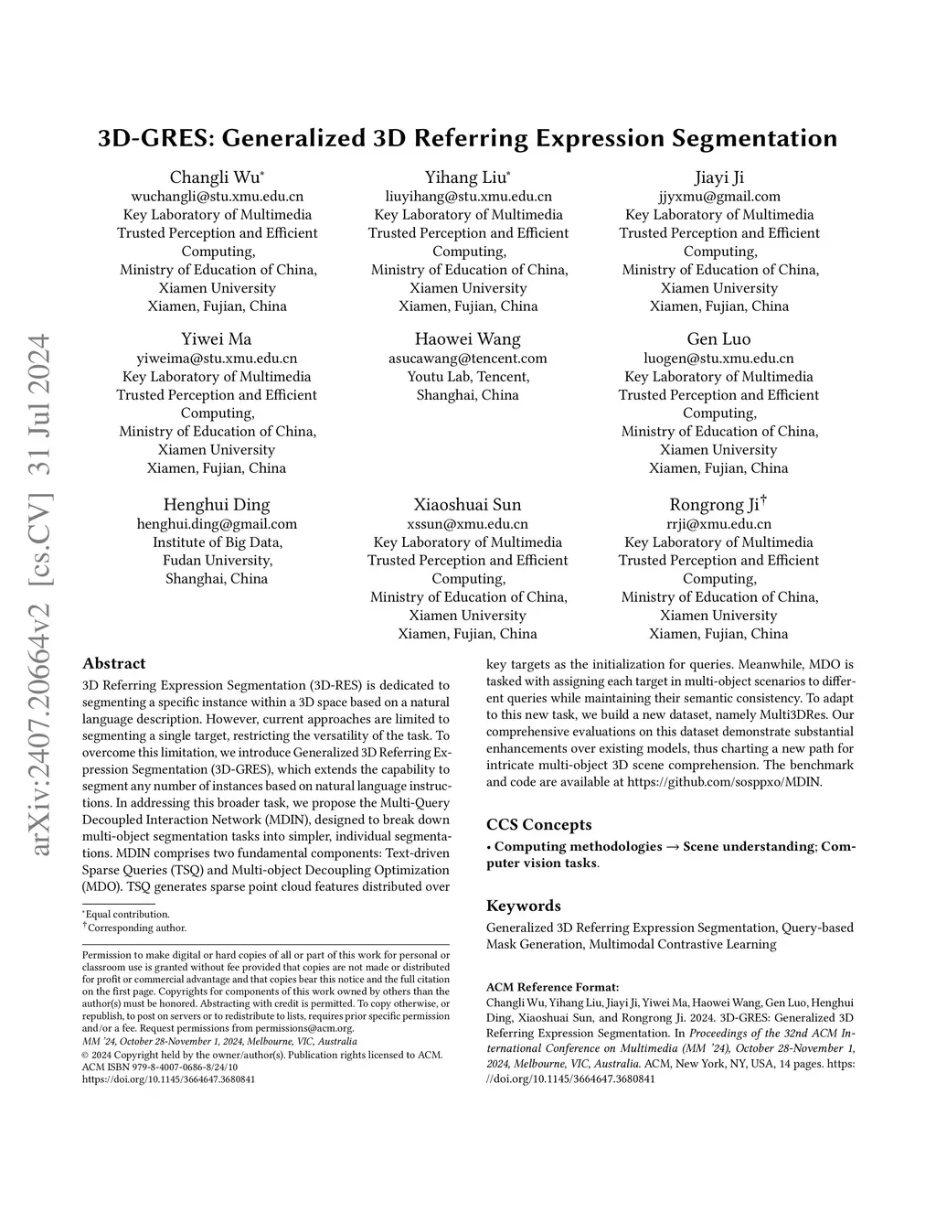 3D-GRES: Generalized 3D Referring Expression Segmentation