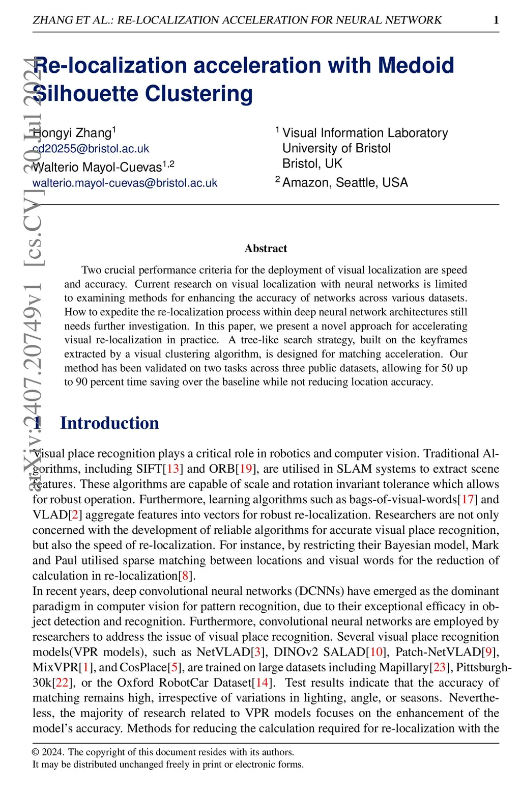 Re-localization acceleration with Medoid Silhouette Clustering